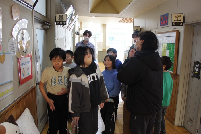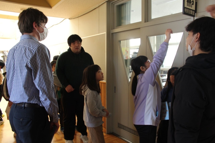 など、校内のあらゆる場所をめぐり、英語での伝え方を確認しました。