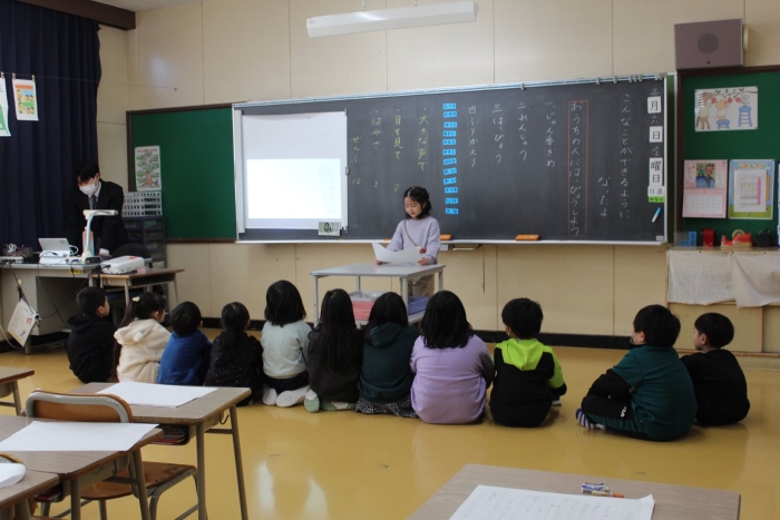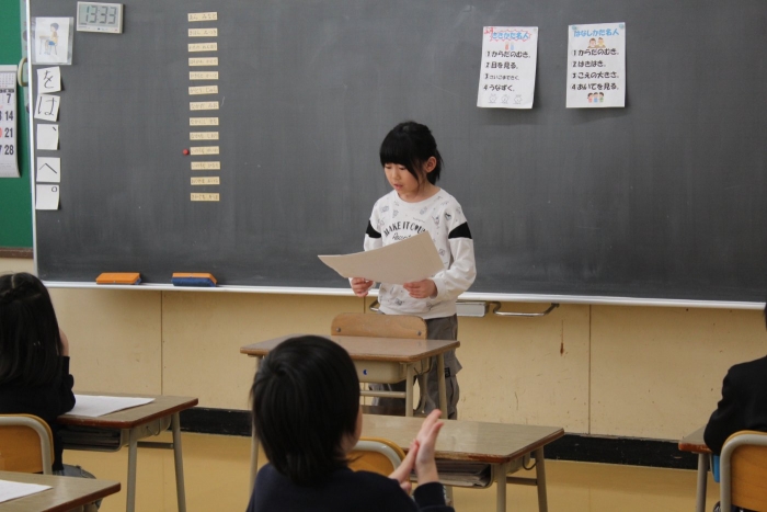 2年生は国語で、この1年でできるようになったことを振り返る作文を発表しました。
