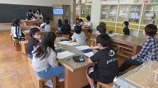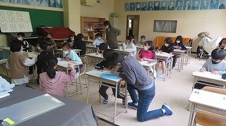 6年生が、1回目の話し合いのときに出た意見のコース調整や事前に下見に出かけてつくった資料をもとに、遠足当日のスケジュールの説明会が行われました。