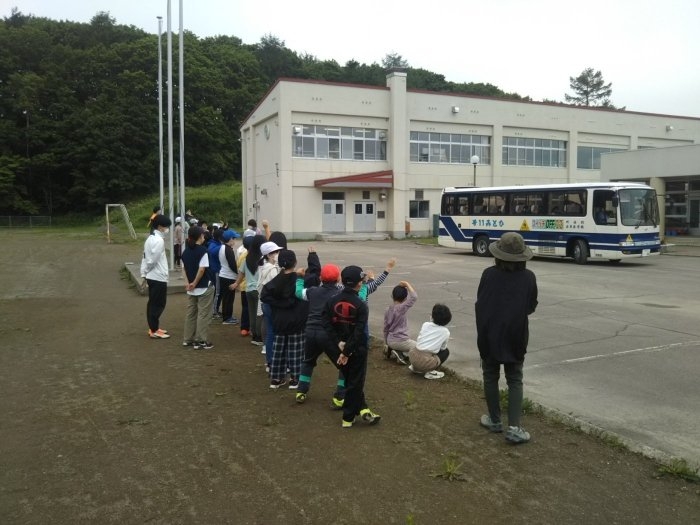 5年生は、今朝、絶好の日和の下、宿泊研修に出発しました。