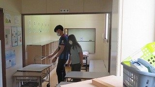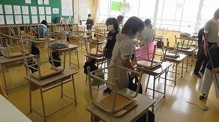 自分たちの教室はもちろん、体育館や特別教室など、いろんな場所を分担して行いました。