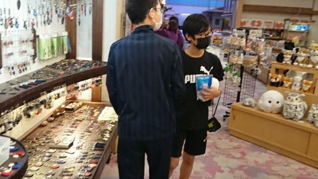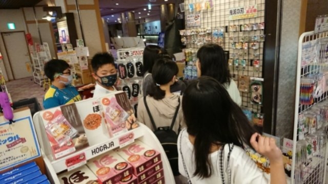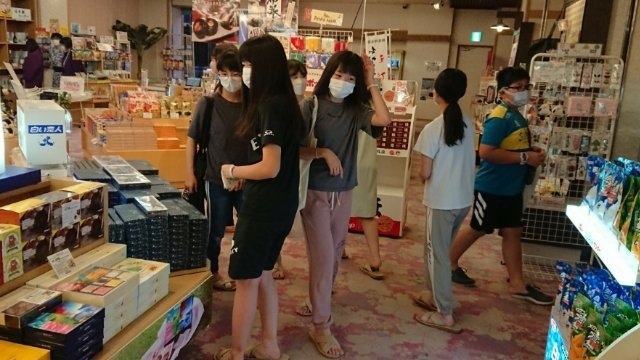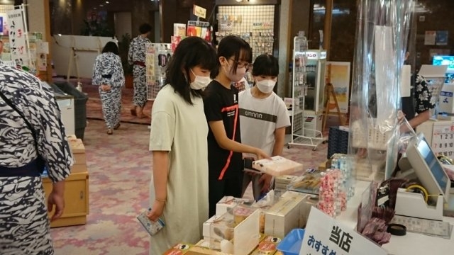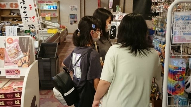 入浴を済ませたあとは自由時間です。売店ではお土産を選んだり、自分用の思い出のものを探したりして時間を過ごしていました。