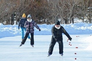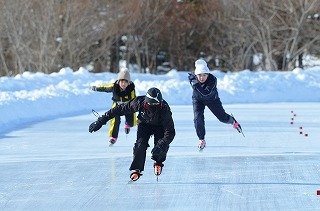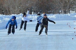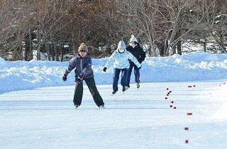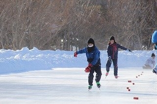 本日、スケート記録会を行いました。風が強いということをのぞけば、リンクコンディションは上々です。準備体操とウォーミングアップを終えた子どもたち。風に負けず、自身のベストを目指して最後まで力走を見せてくれた子どもたちの姿はとても素晴らしかったです。