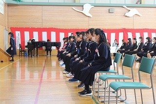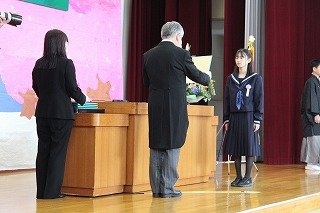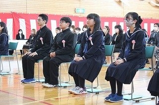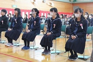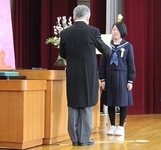 PTA会長からの祝辞では、お家の方々の支えを信じて、自分の可能性を広げてほしいというお祝いの言葉を頂きました。