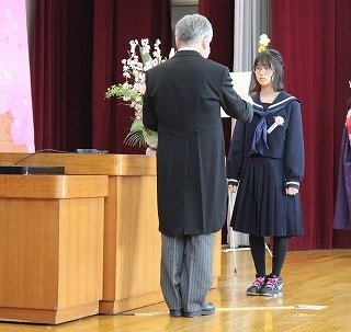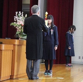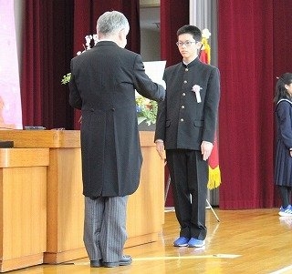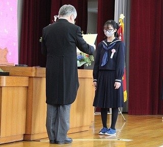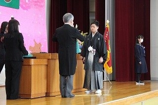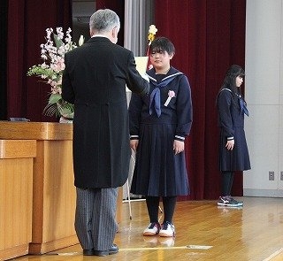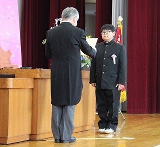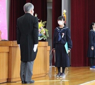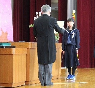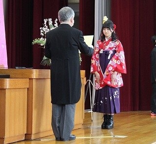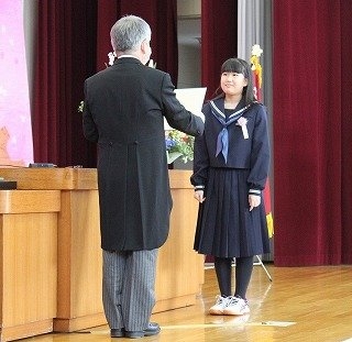 卒業証書を受け取るときの堂々とした姿勢、証書授与者をしっかりと見据えた視線に6年間の成長の足跡を感じました。