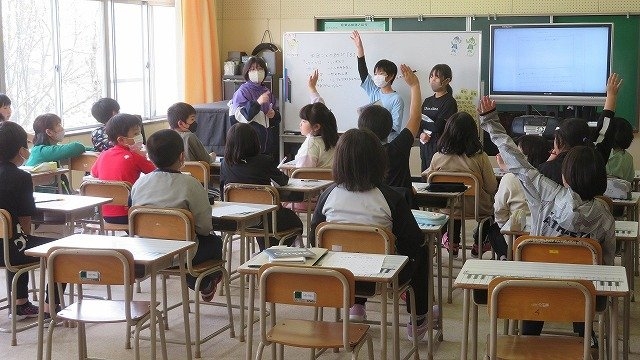 あまった時間は、学年ごとの終わりを合わせるために6年生が用意してくれていたクイズやミニレクを楽しんでいました。