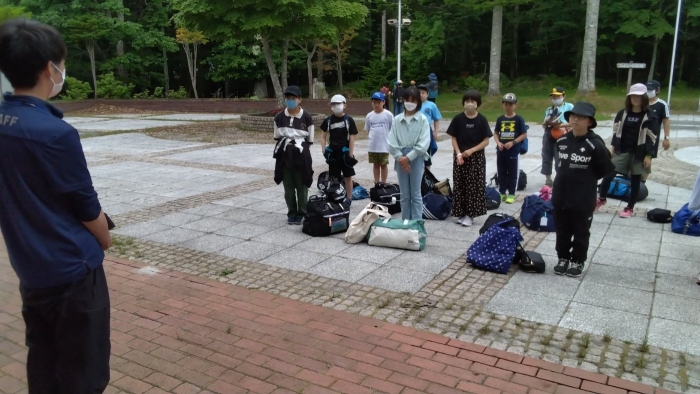 別れの集いでは係の方からお話をいただき、代表の児童がお礼の言葉を伝えました。