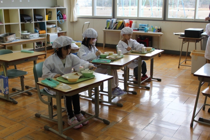 1年生給食スタート! 2022年04月14日(木) 授業の様子 本日(4/13)より、1年生の給食が始まりました。朝から給食をとても楽しみにしていた1年生。 今日は和食中心のメニューでしたが、よくかんでおいしく食べていました。 給食の準備や片付けも2年生に教えてもらいながら、一生懸命がんばっていました。