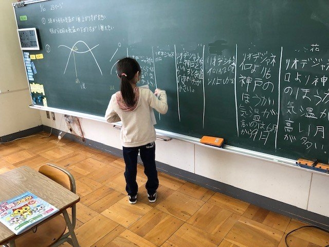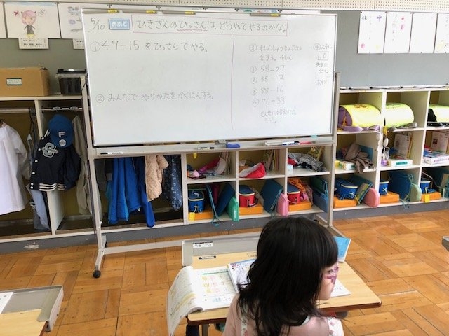 やる気がみなぎっています 2023年05月10日(水) 授業の様子 新年度がスタートして1か月が過ぎました。どのクラスも授業に集中しています。 1年生は、(前から)「何番」・「何番目」のお勉強です。なかなか難しいですね。 2年生はひき算の筆算のやり方を学習中。 3年生は時間のたし算をやっていました。 4年生はグラフから読み取れることを交流しています。 5年生はめだかのことを勉強しています。 6年生は物の燃え方を、タブレット上のホワイトボードに付箋でまとめる作業をしています。