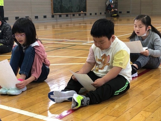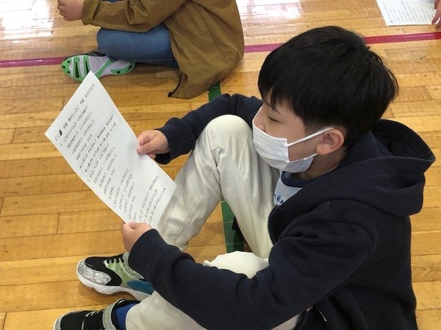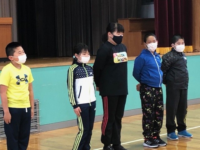 歌声集会 2023年05月16日(火) 日々のできごと 本日の全校朝会は歌声集会でした。 気持ちの良い挨拶から始まります。 今後、学芸会や音楽祭に向けて歌の練習をします。 みんなで声を合わせて練習。 マスクをしているので、口が開いているかは見えませんが、声はしっかりとどいています。 児童会からは、運動会のスローガンの発表がありました。全力で、あきらめずに、運動会を楽しもう!!! 最後までやり抜く強い心で競い合いながら、みんなで一緒に楽しむことができればいいですね。