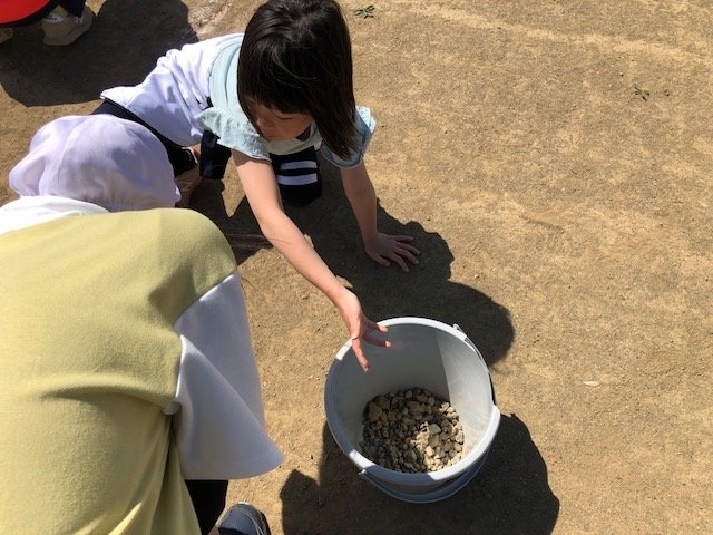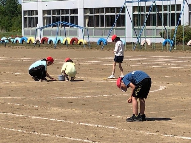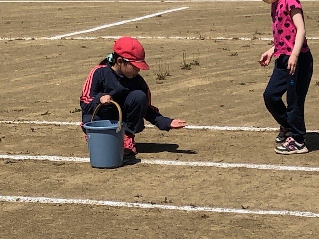運動会に向けて練習中、準備中 2023年06月01日(木) 日々のできごと 昨日の総練習で課題だった種目を中心に、練習をしました。風はありましたが、日差しが強く、短時間で集中して取り組みました。 昨日より声が出ていました。動きも大きくなってよかったです。 リレーでは、バトンの受け渡しを意識して練習。 スムーズなバトンリレーになりましたよ。 昼休み後、グラウンドの石拾いをしました。 自分たちが安心して競技できるように全校みんなで石拾い。 高学年はバケツを持って、みんなが拾った石を集めます。 始まってすぐに、こんなに集まっています。 全員で拾った石をまとめると、バケツ1杯分にもなりました。