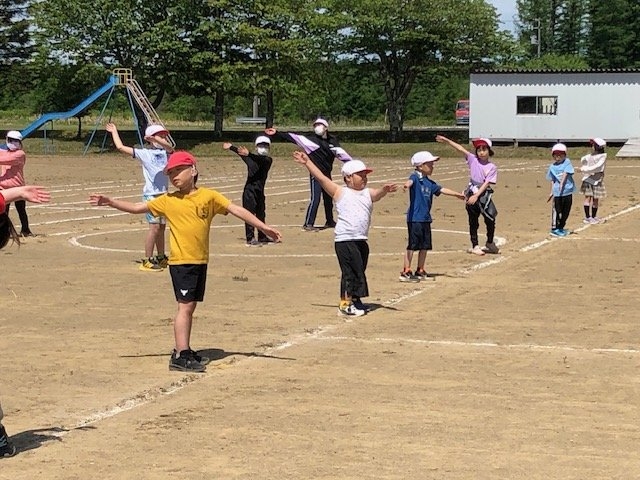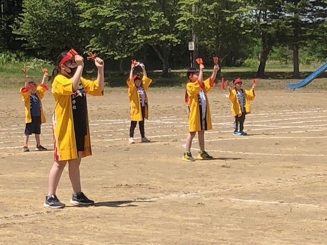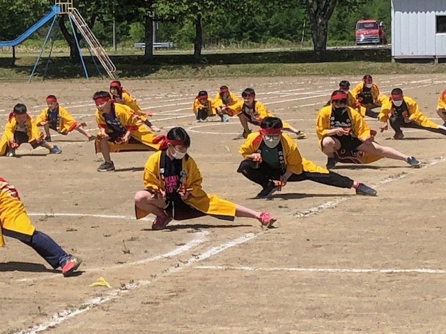 運動会総練習 2023年06月01日(木) 日々のできごと 5月31日、良い天候の中、運動会の総練習を行いました。 ラジオ体操から全力です。 応援合戦では、巻物を読み上げるパフォーマンスがいいですね。 風がある時は、周りの協力も大事です。 法被を着て踊ると、それだけで迫力が違います。 この動きは脚にきますが、その分見た目がかっこいいです。 前日のリレー練習で課題だったバトンの受け渡しを特訓。