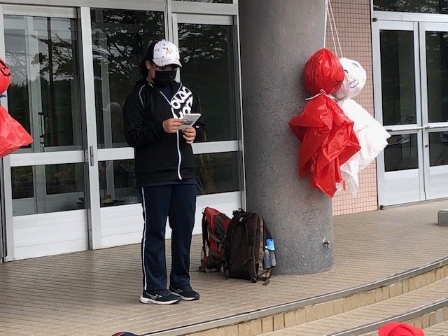 全校児童が9時に学校前に集合し、出発式を行いました。