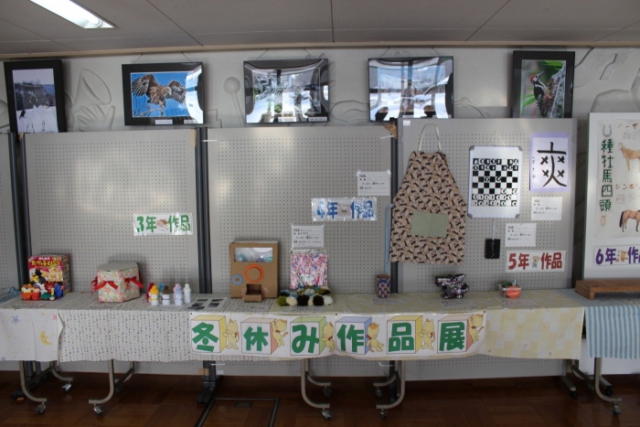 冬休み作品展 2022年01月24日(月) お知らせ 現在、冬休み作品展が児童玄関ホールにて開催されております。(1/28まで) アイディア作品や親子での協力作品等、力作揃いとなっております。 学校にお立ち寄りの際には、ぜひご観覧いただければと思います。
