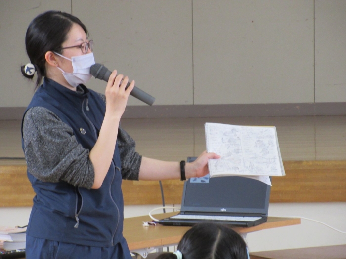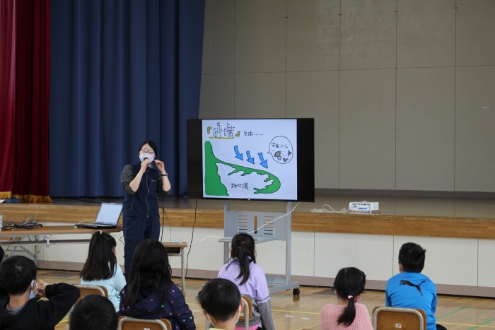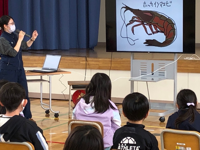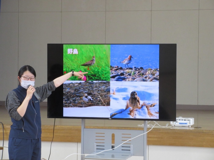 【野付小学校】「野付半島ツアー」事前学習 2022年06月09日(木) 授業の様子 ネイチャーセンターから講師をお招きして「野付半島ツアー」の事前学習 今月17日に計画している「野付半島ツアー」に先駆けて、1年生から4年生までの児童が、野付の自然環境について学習しました。講師はネイチャーセンターの学芸員さんです。 写真やイラストを使ったわかりやすい説明に 子どもたちは興味津々 野付半島は野鳥の楽園、270種類も観察できます! 野鳥の名前や区別の仕方を知っている1年生にびっくり みんながよく知っているオジロワシや オオワシも登場 観察記録も見せてくださいました 風の力で走行する打瀬船と アマモと 北海シマエビの関係も知りました。 質問もいっぱい! 新しいガイドブックをいただいて、ますます楽しみになりました! ありがとうございました