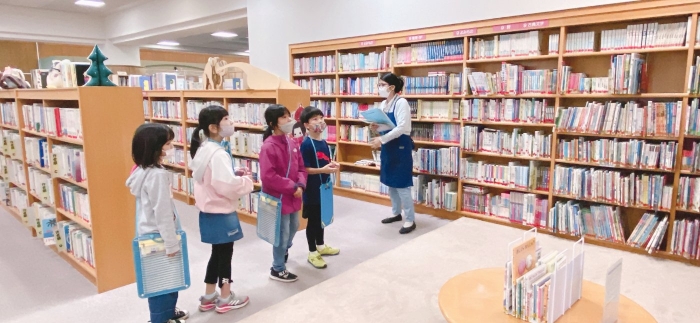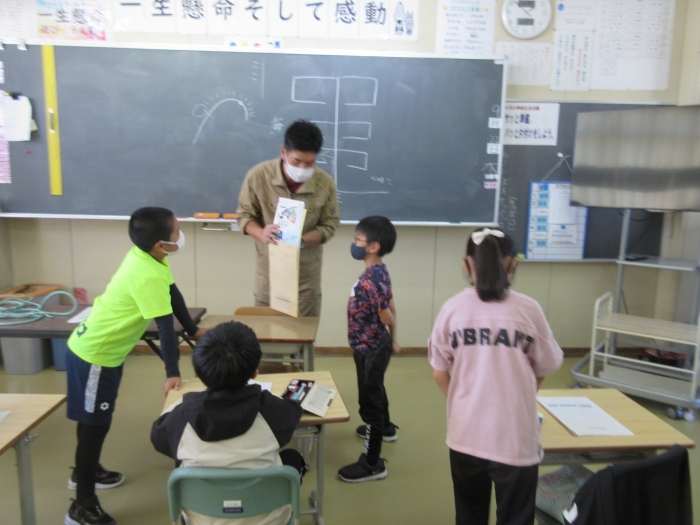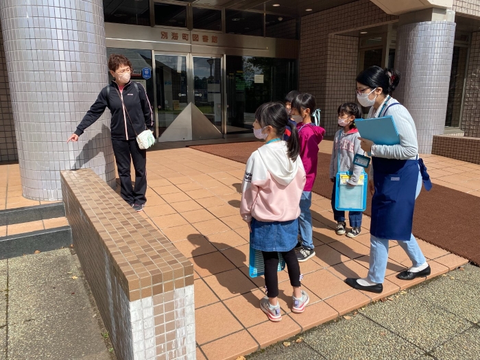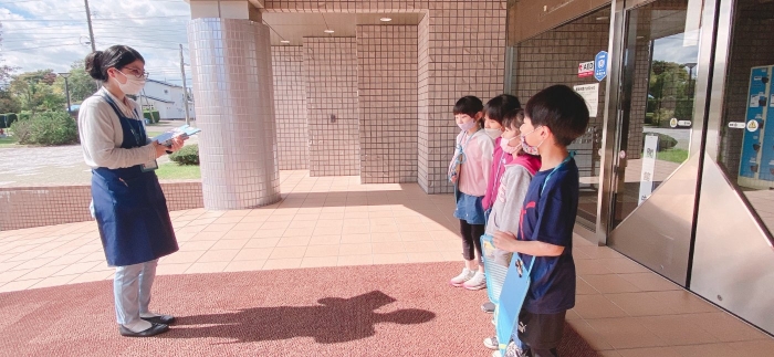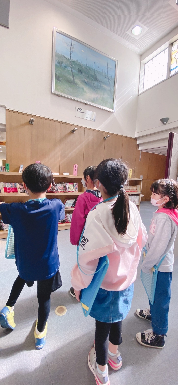 2年生は生活科「えがおのひみつたんけんたい」の学習で、町図書館を訪ねました。図書館のヒミツを知って大興奮!わくわく体験学習になりました。返却口の裏側には、本を守るために座布団が敷かれていました。