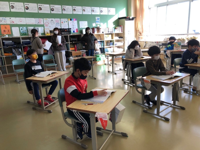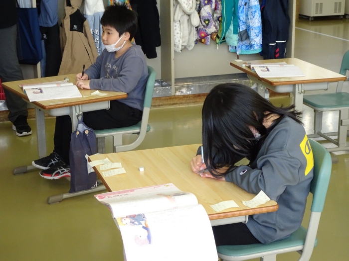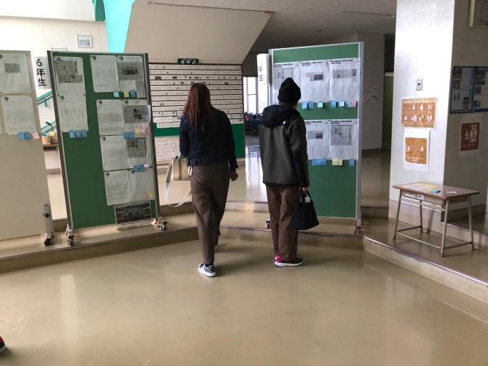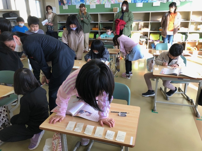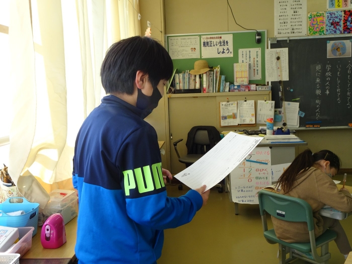 【野付小学校】授業参観日を行いました 2022年12月09日(金) 授業の様子 12月9日は授業参観日でした。日頃なかなか見られない授業の様子をじっくり見ていただきました。また、教室前やコモンスペースにも、学習の成果を展示しました。 「ともだちのいいところ じぶんのいいところ」探しに真剣です。 うれしい言葉がいっぱい 算数ではかりを使います。目盛りの読み方は? 実際にやってみよう。 協力し合って楽しい学校生活をつくろうとする勉強です。 学校でこれからも大切にしていきたいことは・・・ 丸くなってお互いの顔を見ながら意見を交流します。 「自由」「責任」について考えました。 算数の復習です。 教え合いながら進めます。 教室前廊下の作品展示もじっくり見ていただきました。 NIE(教育に新聞を活用する)の取組をコモンスペースに展示しました。 ご参観いただきありがとうございました。