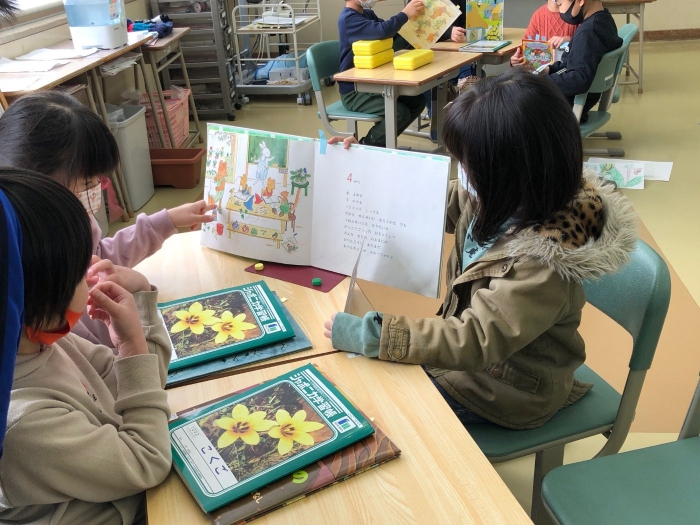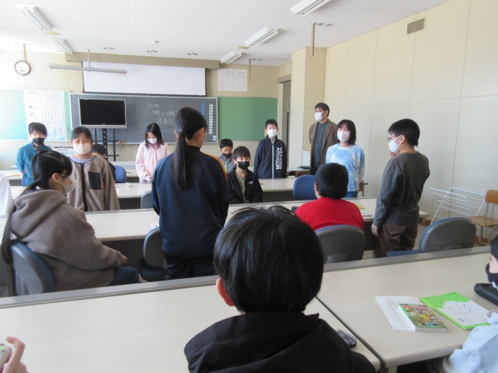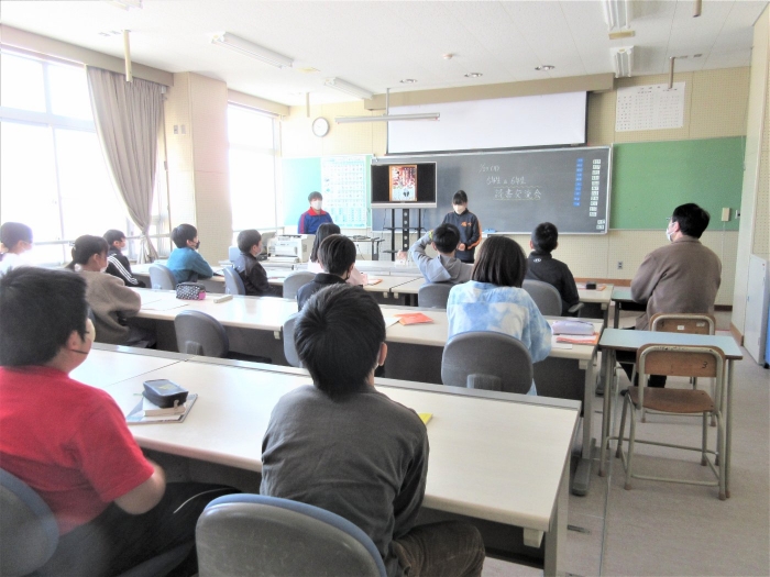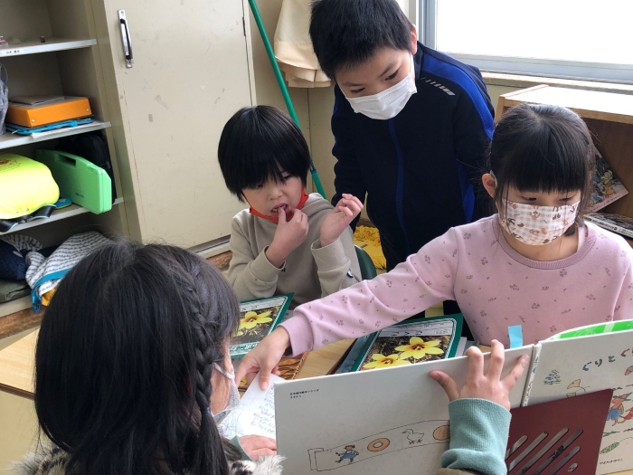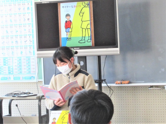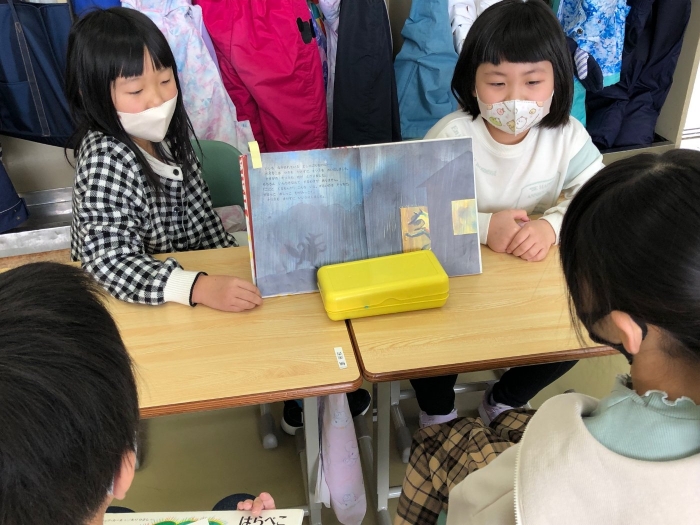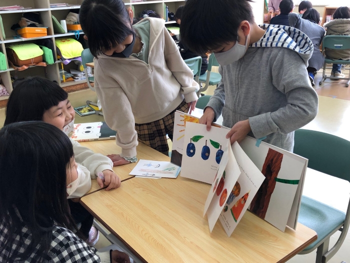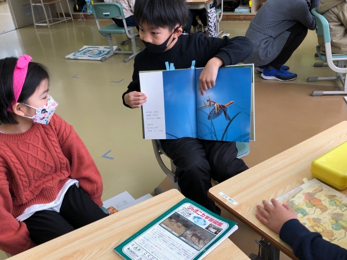 1年生は「お話どうぶつえん」、2年生は「お話びじゅつかん」をテーマに12月から冬休みにたくさんの本と出会ってきました。読んだ本の中からおすすめの本を紹介する読書交流会をしました。紹介の仕方も工夫して、お気に入りのページやお話のわくわく感も伝え合いました。