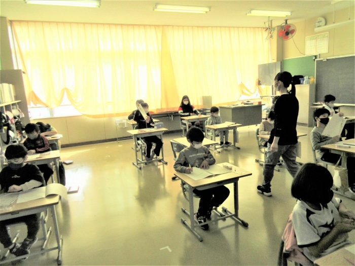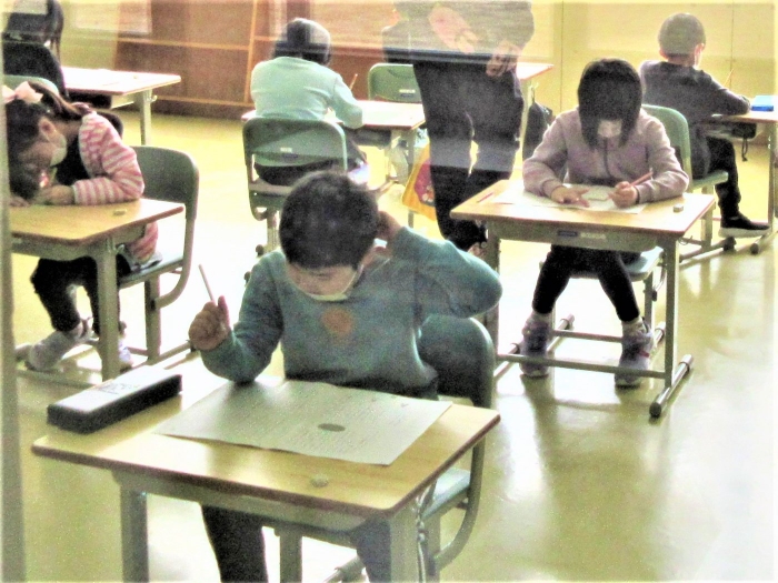 2年生以上の児童が、標準学力テストにチャレンジしました。前学年の学習の習熟を確認できるテスト内容になっています。子ども達は、集中してよく頑張っていました。