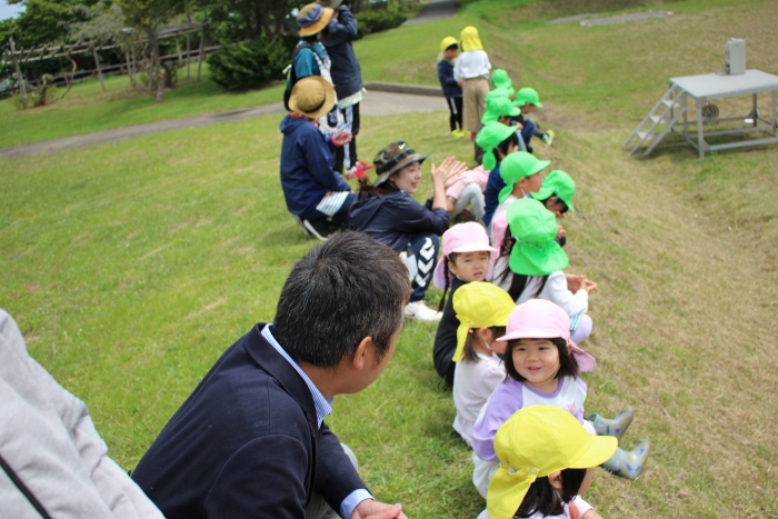 明後日は運動会です。運動会に向けた最後の体育の授業を、園児のみなさんが応援してくれました。幼稚園のみなさん、ありがとうございました。