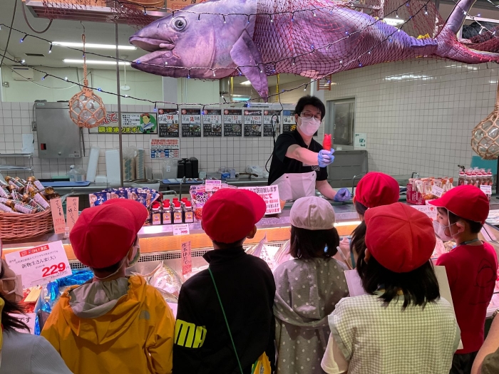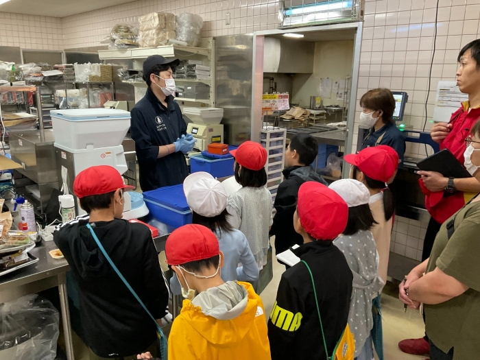 【野付小】3年生社会科見学~お店のヒミツを探ろう~ 2023年09月14日(木) 授業の様子 スーパーマーケットのヒミツを探る3年生 3年生は社会科「スーパーマーケットのヒミツを探る」の学習で、東武を訪ねて見学をしました。バックヤードを見せてもらったり、たくさんのお客さんに買い物をしてもらうための工夫を教えてもらったり、目を輝かせて学びました。この後の漁業の学習にもつながる魚売り場にも興味深々です。今日発見したたくさんのヒミツを、教室の学習につなげてくださいね! 商品の並べ方にも工夫がいっぱい! バックヤードも見せてもらいました! 聞きたいことがいっぱい!!! 東武のみなさん、ありがとうございました!