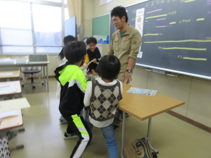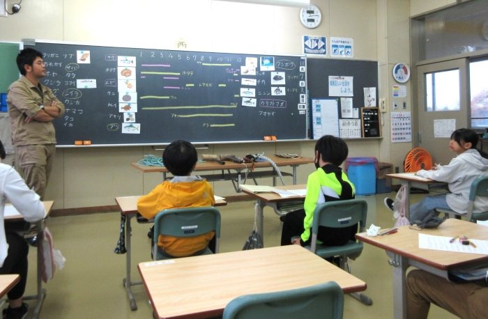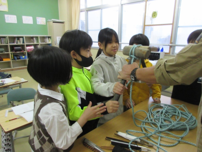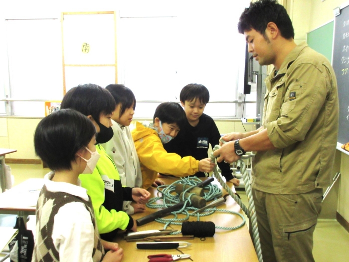 3年生は、漁協青年部長の漁師さん(本校保護者)を先生にお迎えし、社会科「漁業」の授業を行いました。野付の海でとれる魚、それぞれの魚の漁のシーズン、地球温暖化による海の変化、資源を守る取組など、漁師さんだから知っている漁業の情報や苦労についても教えていただきました。実際に漁で使用している道具にもさわったり、縄の結び方を実演して見せてもらいました。質問もいっぱいです!3年生は今日学んだことを大阪府枚方市の小学3年生と交流する予定です。楽しみですね!ご多用の中、ステキな授業をしていただき、ありがとうございました。