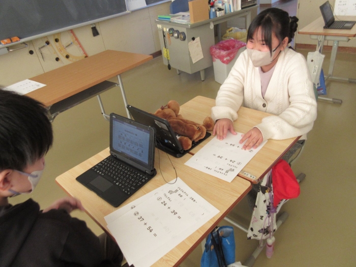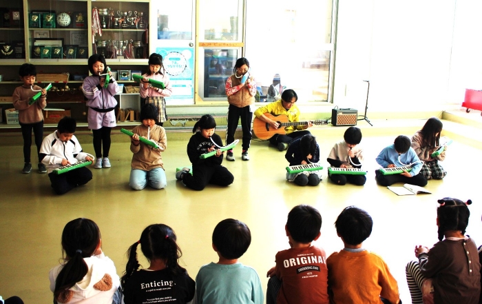 2年生は1年生をロビーコンサートにお招きし、音楽の授業で学習してきた「山のポルカ」を演奏しました。踊りたくなるようなポルカのリズムを感じながら楽しんで演奏する2年生。鑑賞し感想を発表する1年生。交流を通して音楽や表現することを楽しみました。