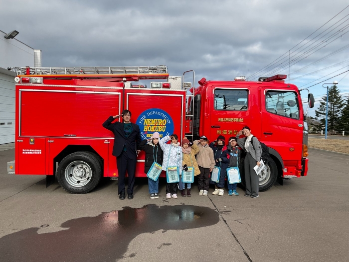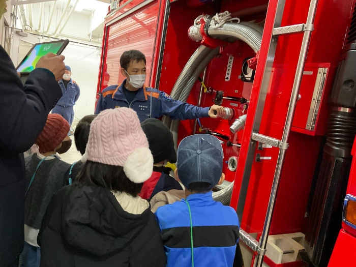 消防署のヒミツを探ったよ! 2023年12月05日(火) 授業の様子 消防車のすごいヒミツを発見! 3年生は社会科の授業で消防署を訪ね、地域の安全を守るしごとについて探りました。消防車や救急車、消防署にはヒミツや工夫がいっぱいでした。 安全を守る仕組みについて説明を聞きました 救急車の中も見せていただきました! 発見! 命を守る仕事の重みも実感 たくさん教えていただきありがとうございました 別海町芸術文化祭入賞者の表彰をしました かっこよく返事をしてお礼の言葉も言えました! 入賞おめでとうございます! 大きな拍手が贈られました! 歌声集会では校歌の歌い方を話し合いました 「いい姿勢で歌ったらいいと思う」 「お腹から声を出しましょう!」 さあ、歌ってみましょう! キレイな歌声が響きました