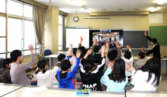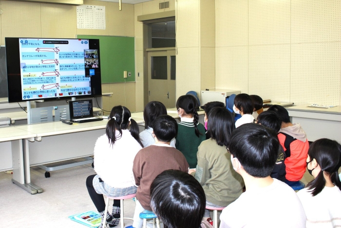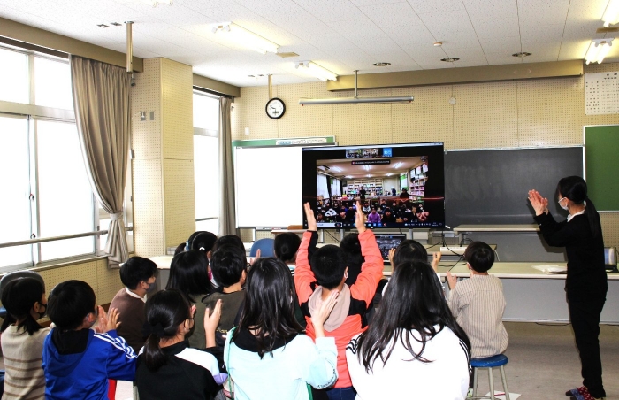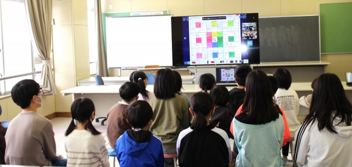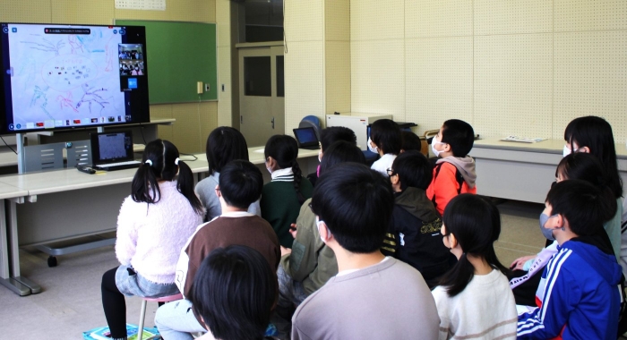 4年生は昨年に引き続き2回目、3年生は12月に続いて2回目の学習交流です。画面が繋がると「久しぶり~!」と声を掛け合う子供達!もうすっかり学び合う仲間です。