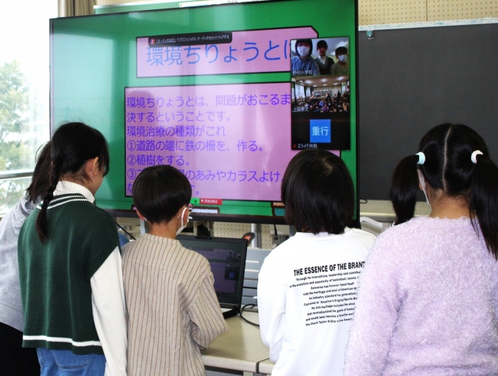 3年生と4年生は、大阪府枚方市の東香里小学校とオンラインで学習交流をしました。