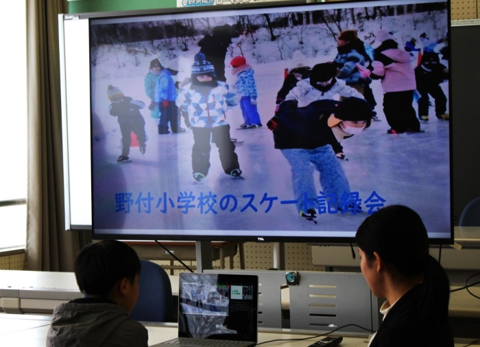 3年生は「冬の暮らし」と「別海ならでは」と「今と昔」について発表しました。資料活用とプレゼン資料作成のスキルが前回より更に高まって、わくわくする楽しい発表になりました。東香里小学校からは、野付小からの質問への回答+「より良い未来のために頑張りたいこと」の発表がありました。最後に東香里小学校の校長先生から「この漁業や農業を未来に残したい」と語った野付小学校の発表に触れられて、「何を残すか・・新しいキーワードですね。」とコメントをいただきました。子供からは「発見がいっぱいあった」「知らないことを知ることが楽しかった」などの感想が話されました。
