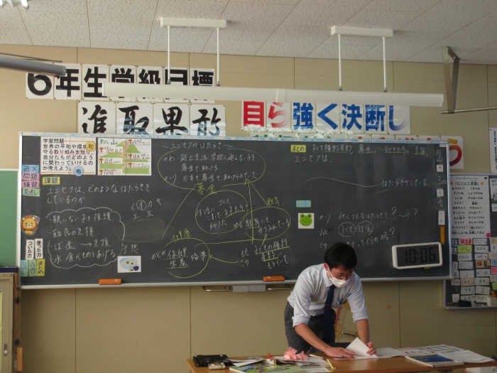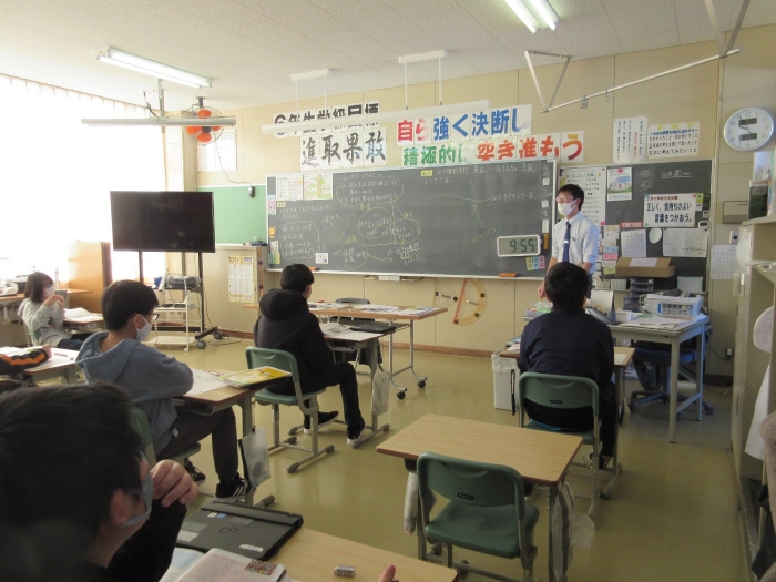 中学校の社会科の先生が6年生教室で授業をしてくださいました。6年生は、自分で進んで考え友達との対話や交流をたくさんする探究型授業を、楽しんで学習していました。次の授業にも家庭学習にも中学校にもつながる体験になりました。ご多用の中、準備・授業をしてくださった中学校の先生、ありがとうございました。
