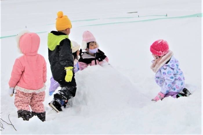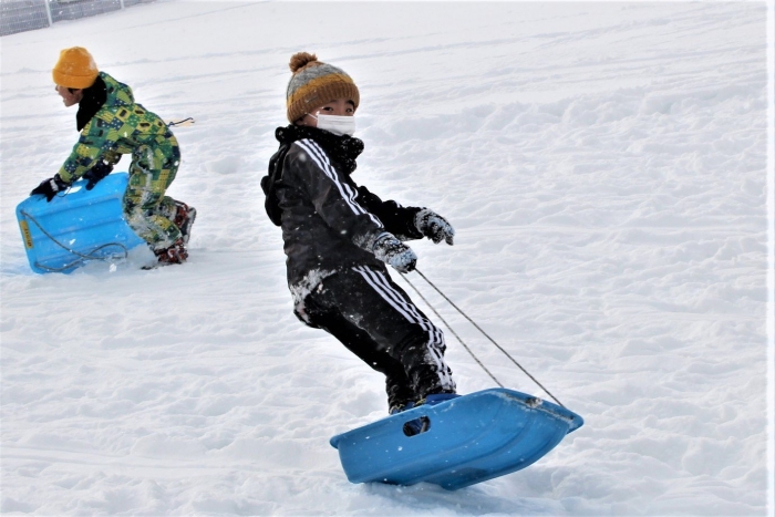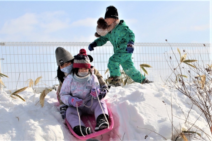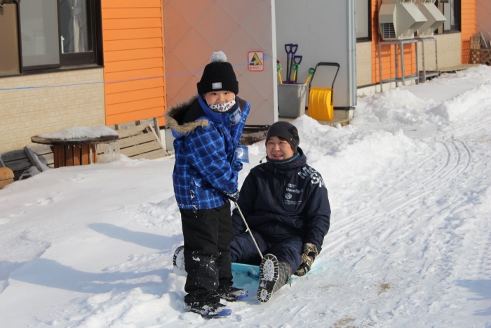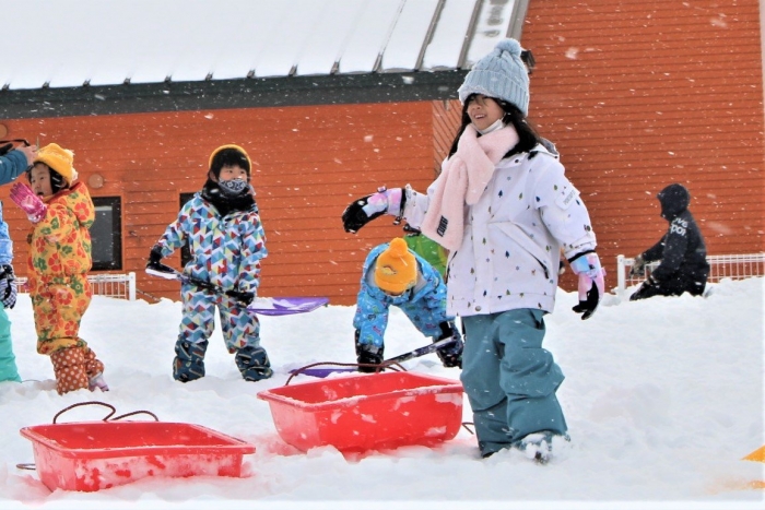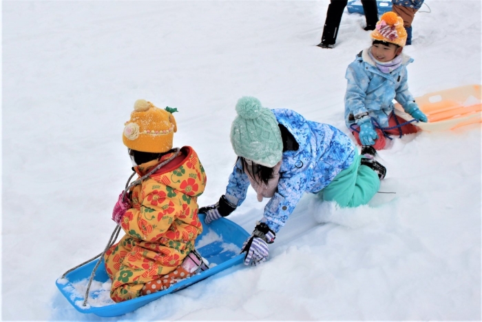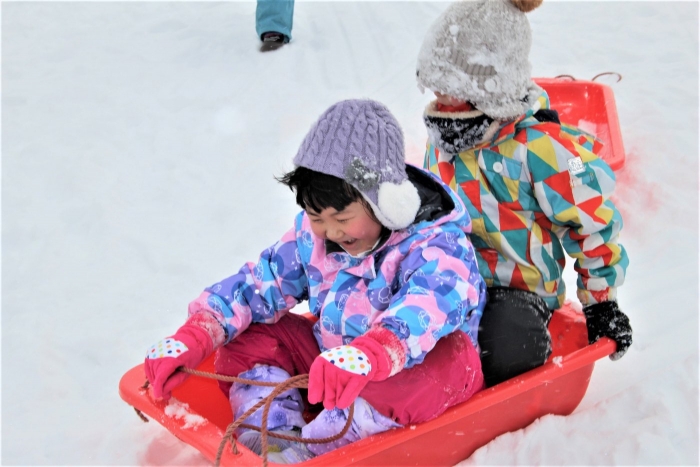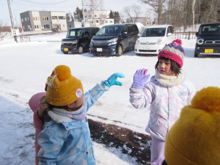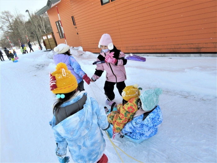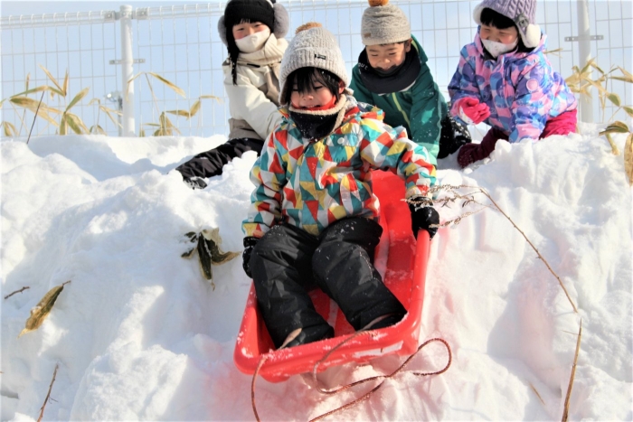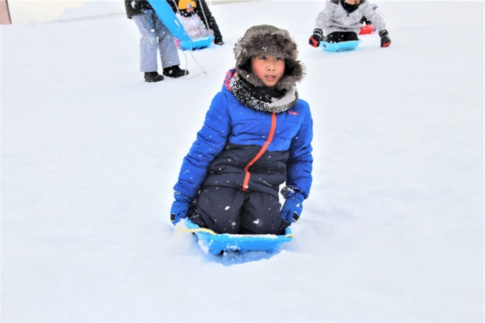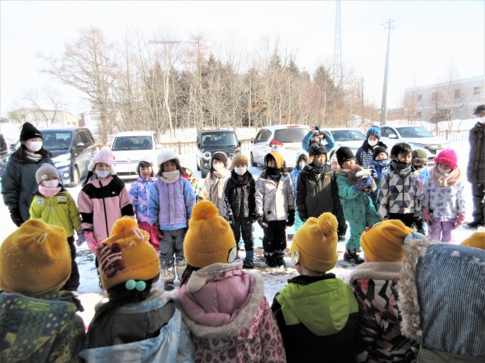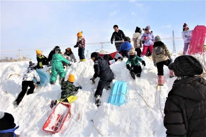 【野付小学校】1,2年生幼稚園で雪あそび 2023年02月06日(月) 幼保小中連携 急斜面をGO! 1,2年生が幼稚園を訪ねて園児のみなさんと雪遊びを楽しみました。達人たちの2時間ノンストップ雪遊びは、ミラクルの連発!大迫力です。野付の子どものたくましさは、ここで鍛えられたのですね! はじめに案内してもらった場所は園舎裏のガケ! もう先生を引っ張っていけるよ! 人型づくり! こわくないよ! たくましく何度も上る子どもたち パークゴルフ場側に移動 園児さんといっしょにそり滑り 押してあげるね いい雪が降ってきました! 雪にうめて楽しむ遊びも さすが!上手! 楽しいね! 達人登場! あっという間に後片付けの時間です ありがとうございました! またあそぼうね!