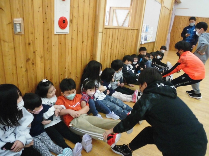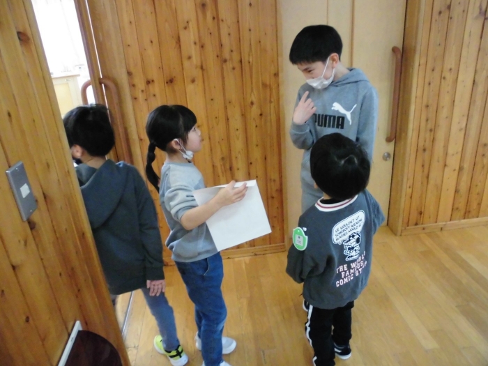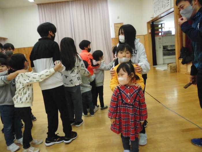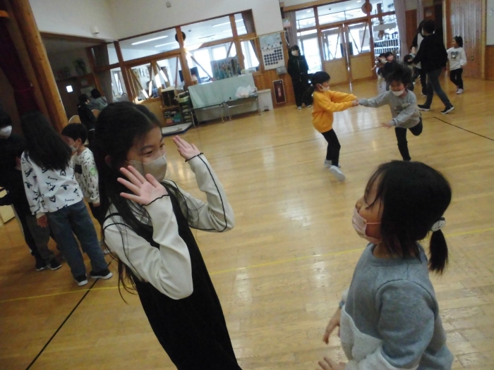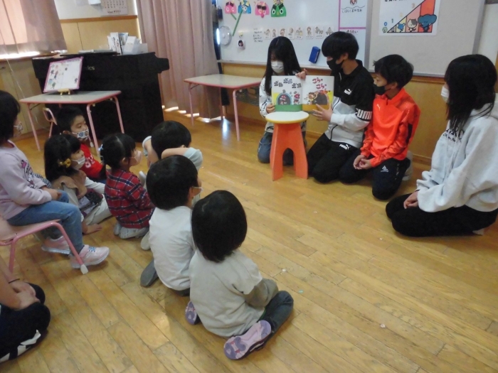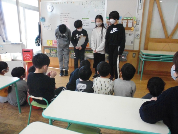 5年生が幼稚園を訪問 2024年02月06日(火) 幼保小中連携 園児さんたちのために絵本を選んで準備してきましたよ 5年生は幼稚園を訪問し、絵本の読み聞かせや遊びでふれあいました。年長さんたちが入学する4月には、6年生として出会う5年生は、かわいい園児さんたちとのふれあいを楽しみにして準備してきました。ひとあし早く春がやってきたような、心温まる時間になりました。 「こんにちは」 優しいお兄さんとお姉さんですよ キラキラ小さな瞳が向けられます! 大根ぬき 抜けるかなー 小さなハートをつかむ遊びの達人5年生 ふれあいもいっぱい! 笑顔もいっぱい! いっぱい遊んでいっぱい楽しみました! 一日入学も入学式も楽しみですね!待っていますよ!