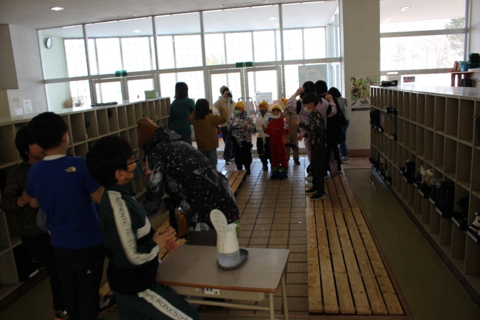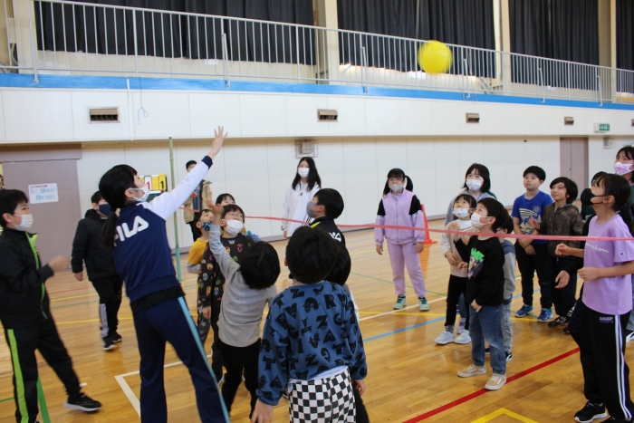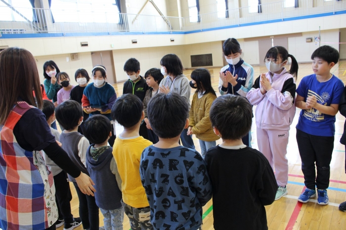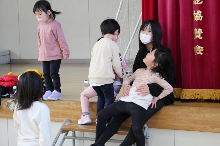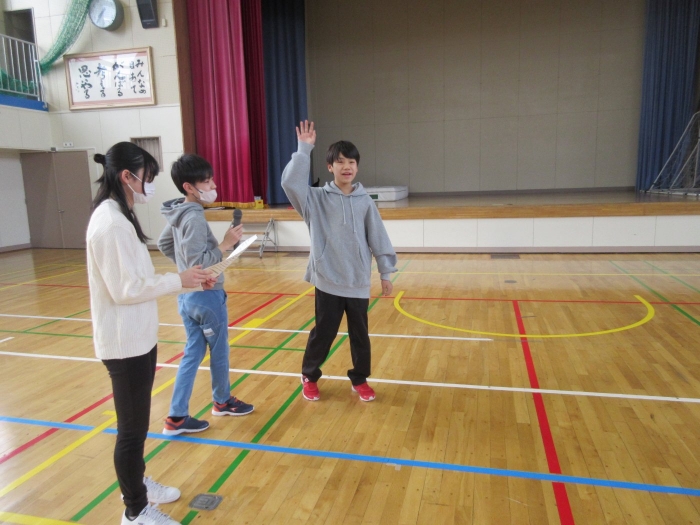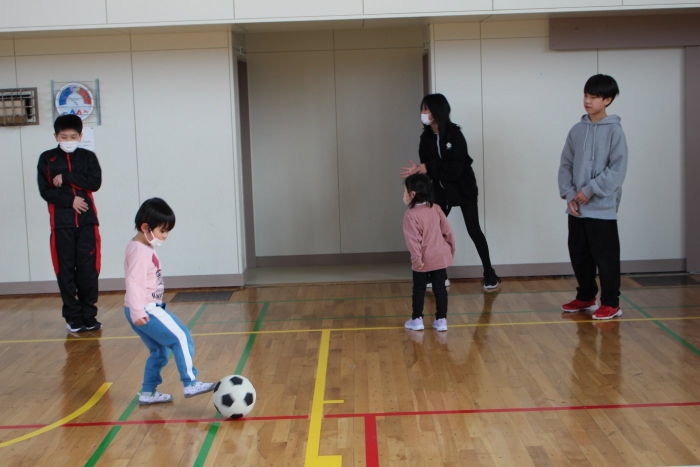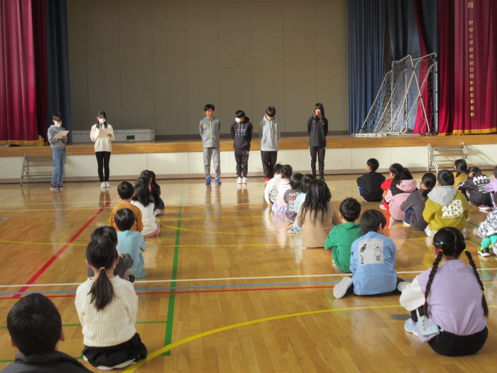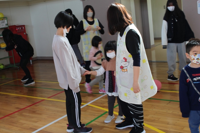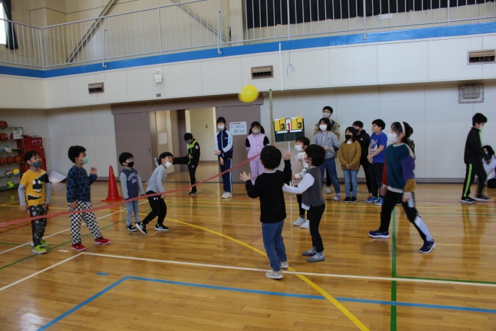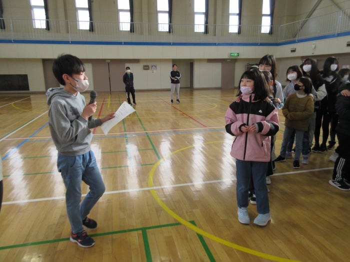 中休み、幼稚園のみなさんが小学校にやって来ました。広い体育館で、お兄さんお姉さんと元気いっぱい遊びます。チャイムがなると、サクラ組のみなさんだけ残って、4年生が考えた遊びをいっしょに楽しみました。名前を言ったり、ルールを守ったり、さすがもうすぐ1年生。新しい遊びにどんどんチャレンジして全力で楽しんでくれました。楽しい時間をありがとう!お兄さんお姉さんたちも、先生方も、みなさんの入学をとても楽しみにしたいますよ!