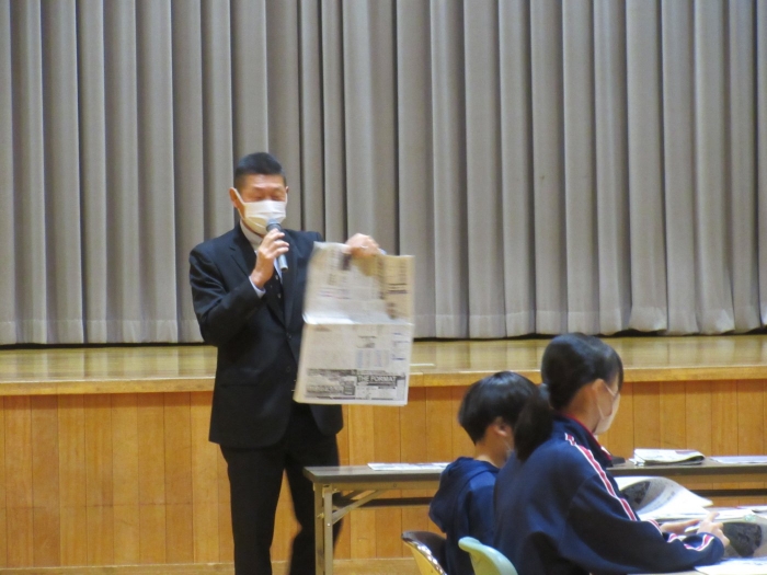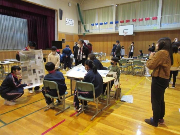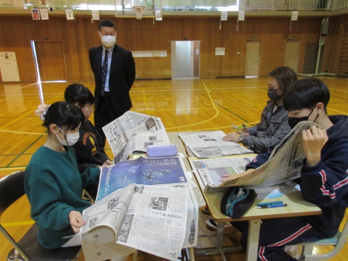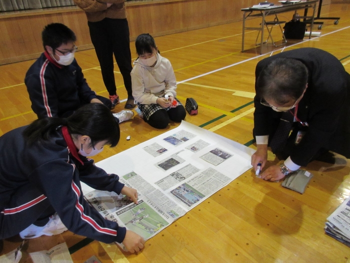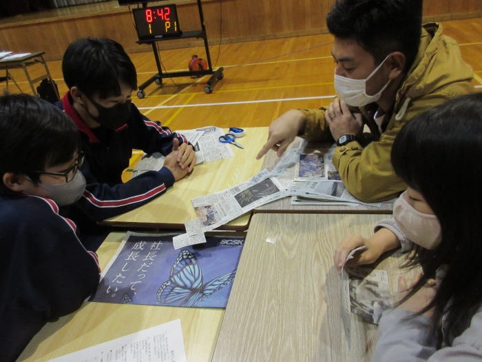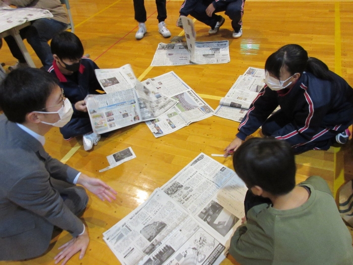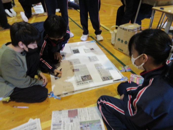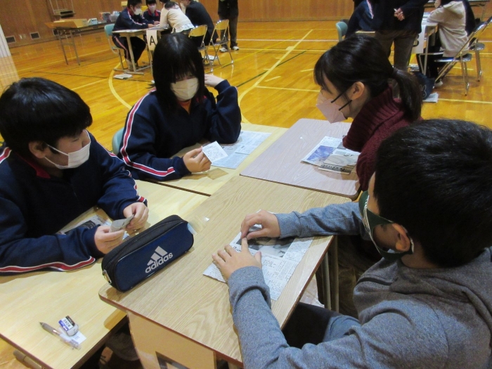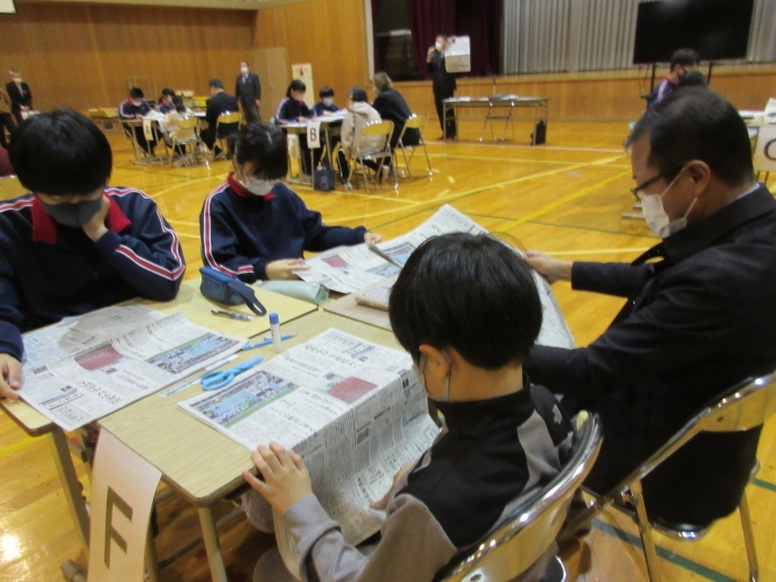 【野付小学校】中学生&CSのみなさんと「まわし読み新聞」に挑戦!