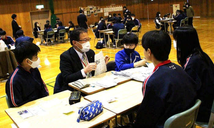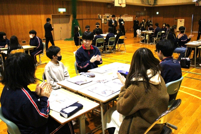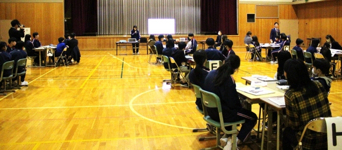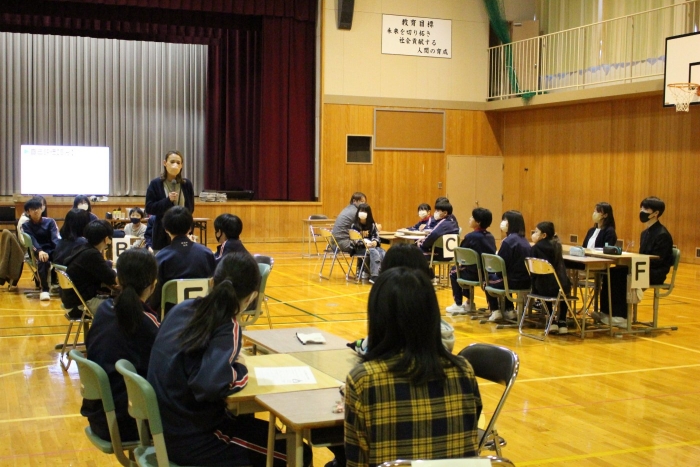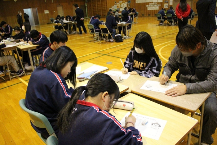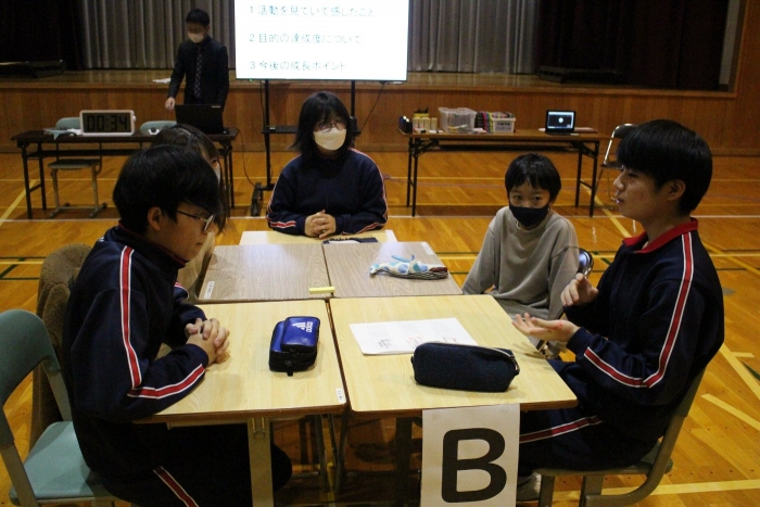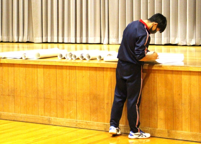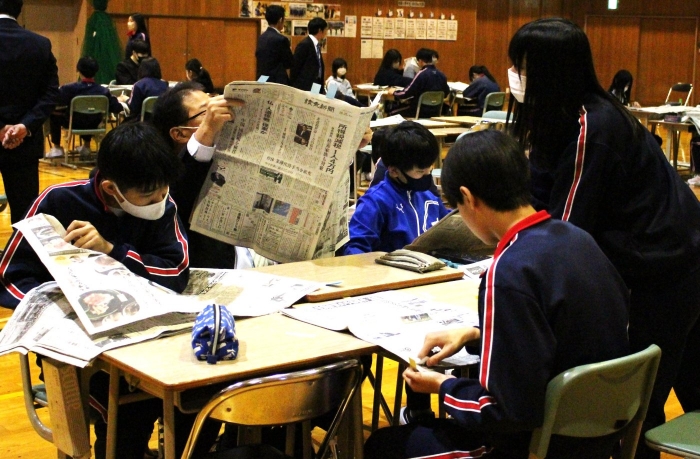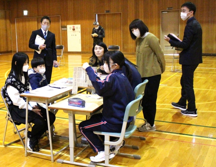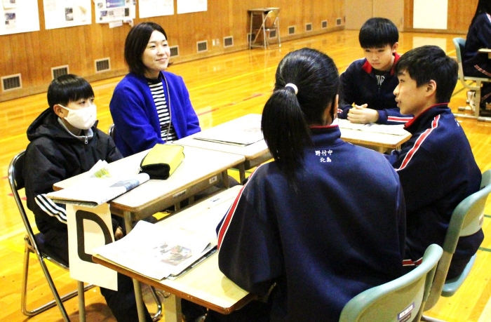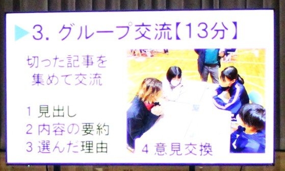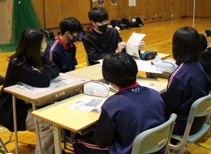 12 月 1日(金)、野付中学校体育館を会場に「野付学校区まわし読み新聞 」が行われました。活動の主催は野付学校区学校運営協議会 学びの土台づくり部会です。野付小学校 5 年生と野付中学校 2 年生に野付学校区 CS メンバーが加わり、参加者55名が 9つのグループに分かれて新聞記事を切り抜いて壁新聞を作成し交流しました。昨年度まで北海道新聞社のアドバイザーが行っていた進行を、今年は野中学校3年生が担当しました。中学3年生は、各グループでも安心して活動できるように率先して声をかけたり、まず先に行動し起点となったり、抜群のファシリテーション力を発揮していました。参加した5年生にも、かっこいい目指す15歳の姿として、目に焼き付いたと思います。最後に参加したCS方から、「野付の子のコミュニケーション能力がすごい!野付の未来は明るいです!今日の経験を自信にしてこれからも楽しんでください!」と感想をいただきました。会場が笑顔に包まれました。