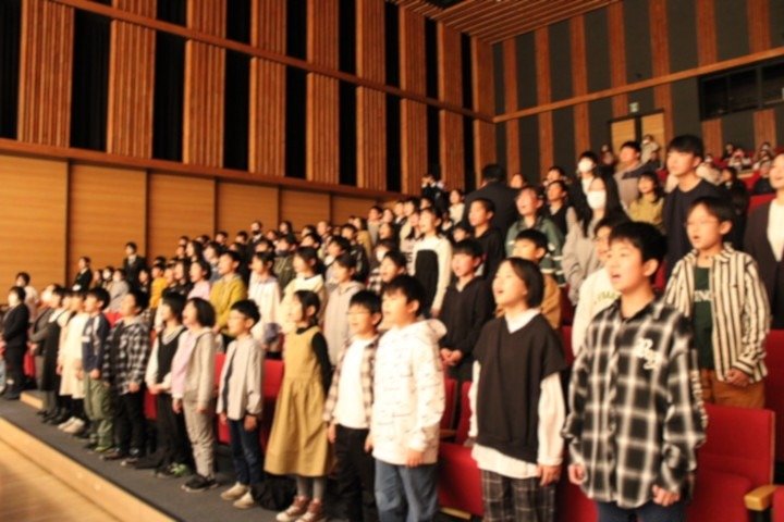 30日(木)に「別海町生涯学習センターみなくる」において町内の小学校が一堂に会し、合同音楽祭(小学校の部)が行われました。本校は、4~6年生が学芸会でも発表した合唱曲2曲を披露しました。思いを歌声にのせて届けようとする姿が表れた合唱でした。これまでの練習の様子を見ていたので、聞いていて、なおさら心が震える歌声でした。学芸会とは違う緊張感を味わいながらも、大きなステージ、たくさんの観客の前で表現することを楽しむ姿、挑む姿が見られました。「『みなくる』のステージは声が響いている感じがした」という感想が子どもからあがりました。他校の合唱や器楽演奏に刺激を受ける様子も見られました。音楽祭でも「じぶ・り・み・よ」の姿が表れました。ご多用の中、参観にきていただいた保護者、地域の皆様、温かい拍手をありがとうございました。