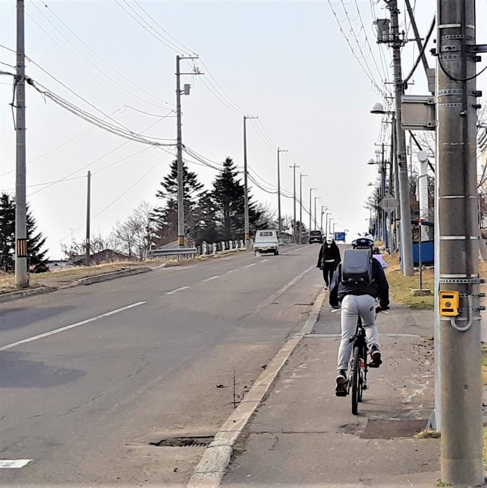 【野付小学校】今日から自転車通学OK 2022年04月18日(月) 日々のできごと 自転車通学OK 今日から3年生以上(希望児童)の自転車通学がスタートしました。歩道を歩く子どもたちがちょっと端によけたり、自転車に乗る児童が追い越す場面で降車して押したり、安全に気を付けて気遣う場面も見られました。教員も今日から3日間、登校の様子を見守ります。 上りです!頑張って! 先週からタブレットの持ち帰りをしています。自転車通学児童の安全を考え、ランドセルに入れて持ち帰るためのケースを準備しました。ご活用ください。