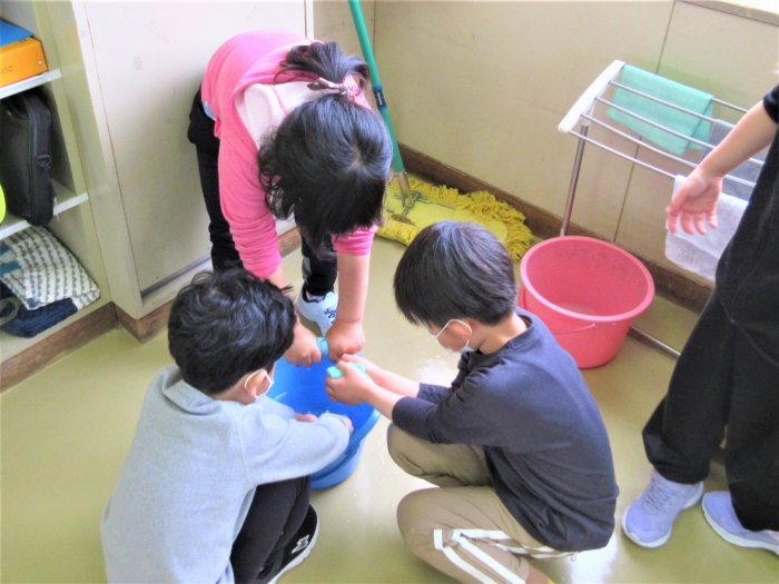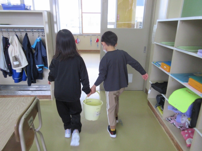 【野付小学校】1年生はおそうじ名人 2022年04月22日(金) 日々のできごと 長い廊下を雑巾がけ 1年生はおそうじが上手です。幼稚園で雑巾がけも雑巾しぼりも経験してきていました。 「ぞうきんレースもしましたよ!」 自信をもって楽しそうにおそうじできるヒミツを教えてくれました。 これもスタートカリキュラムですね! 上手に雑巾しぼりもできます お友達が重そうだったら、そっと助けてくれる心もピカピカの1年生 今日は入学式の集合写真を持ち帰りました ちょっと懐かしそうに見ていました