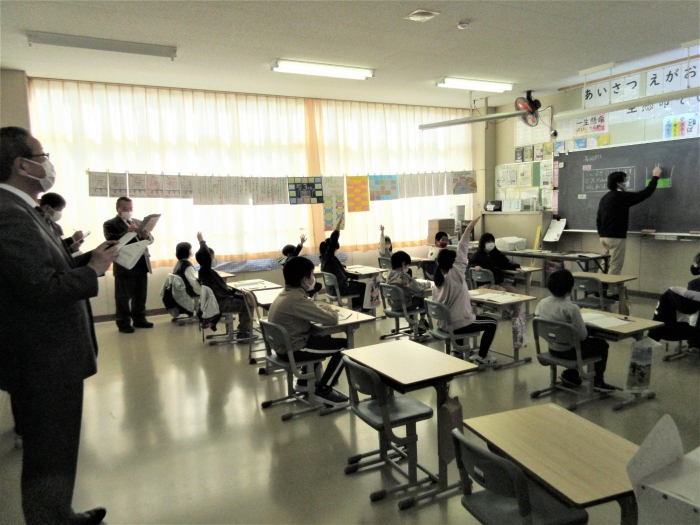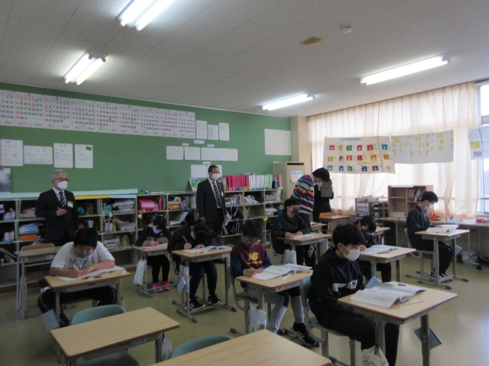 根室教育局より指導監、別海町教育委員会より教育長と指導主幹が来校され、全学年の授業の様子を観ていただき、学校経営について指導や助言をいただきました。主体的に学び合う子どもたちの姿や、図書やNIEの学校環境など、いいところをいっぱい見つけていただき、改めて確認することができました。教えていただいたことは、今後の学校運営や教育活動に生かしていきます。