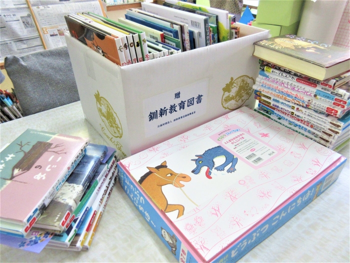 釧新教育図書が100冊届き、図書室の本はさらに充実しました!