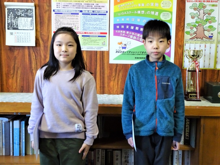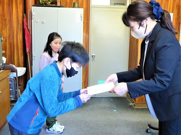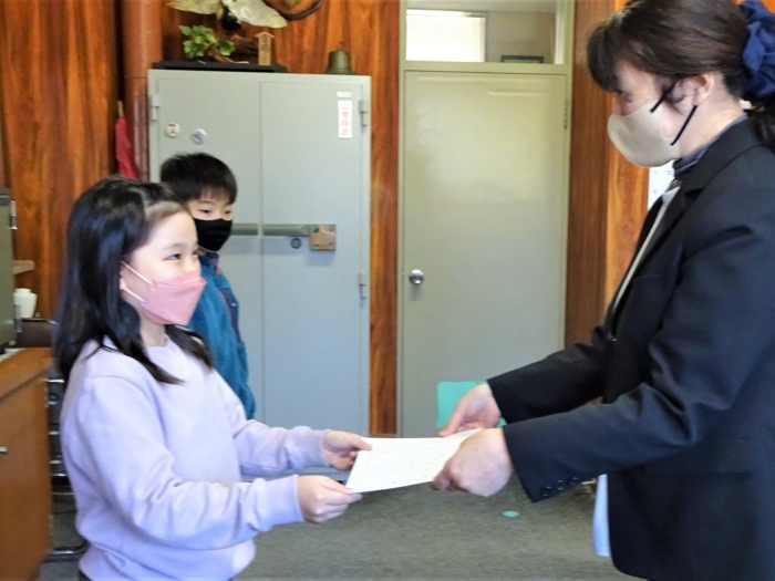 【野付小学校】別海町芸術文化祭表彰その2 2022年12月05日(月) 日々のできごと 入賞おめでとうございます 別海町芸術文化祭について、先週、表彰できなかった児童への表彰を行いました。おめでとうございます。これからもステキな作品をつくってください。