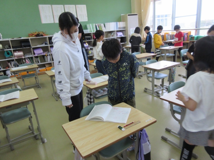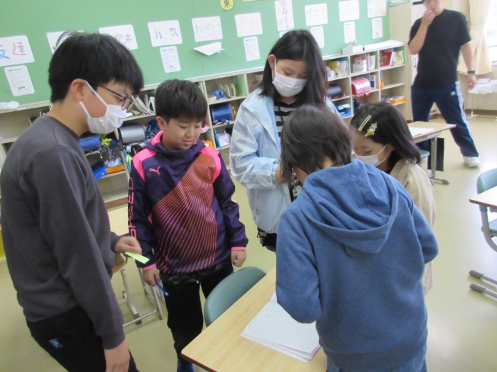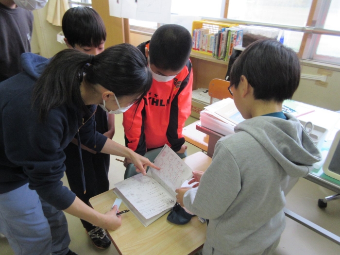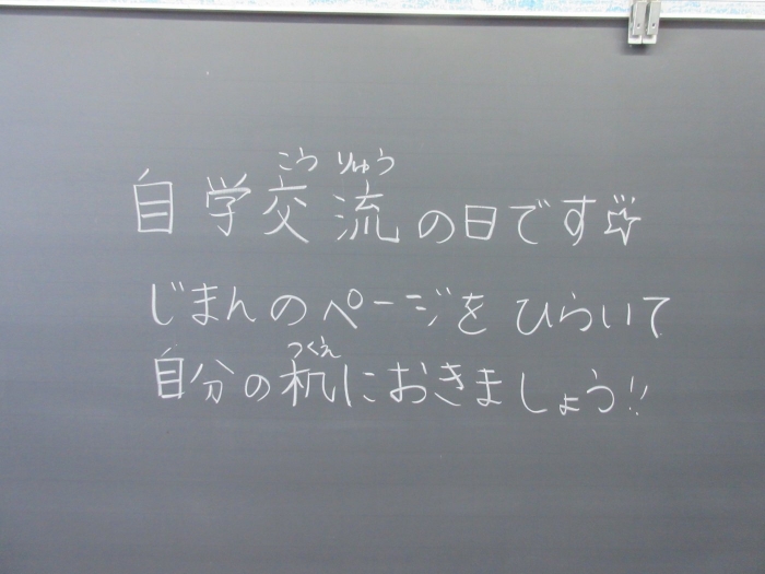 【野付小学校】自学交流会 2023年10月05日(木) 日々のできごと お隣の学年と自学ノートを見合う子供達 3年生と4年生、5年生と6年生が自学ノートを交流し、コメントを付箋紙に書いて伝え合いました。「題名をつけているところがいいね」「振り返りを書いているところがいいね」「100問もやったんだ!すごいな・・」などなど、教室内はにこにこ褒め言葉が飛び交いました。今日からの自学への意欲や生かすアイデアもふくらんだようです。