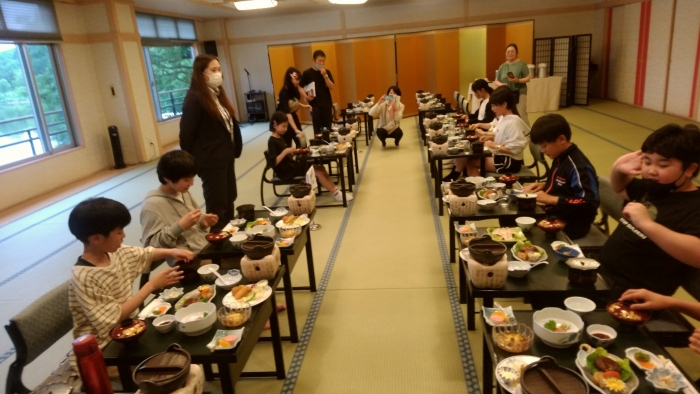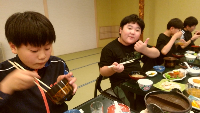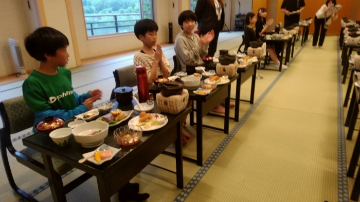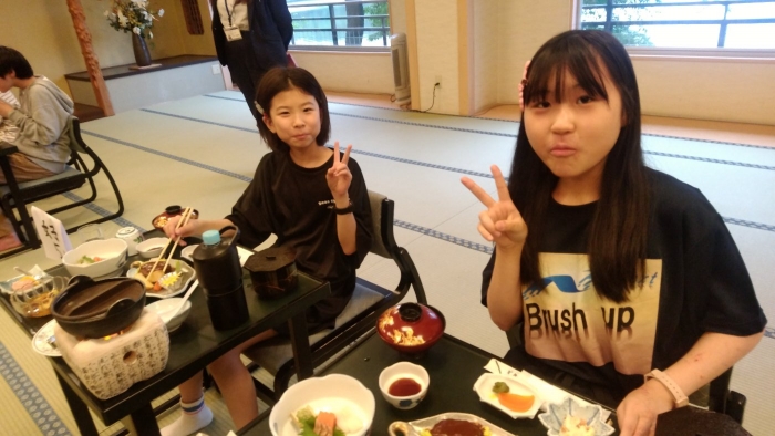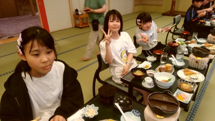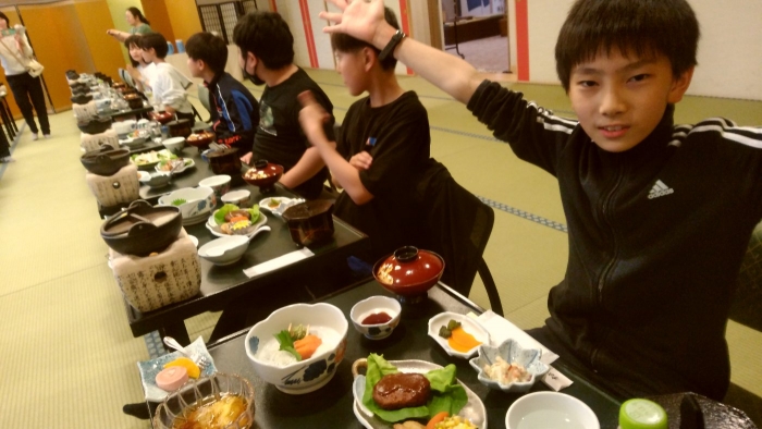 修学旅行1日目の活動が終わり、ホテルに無事到着。現在おいしい夕ごはんをいただいてます。