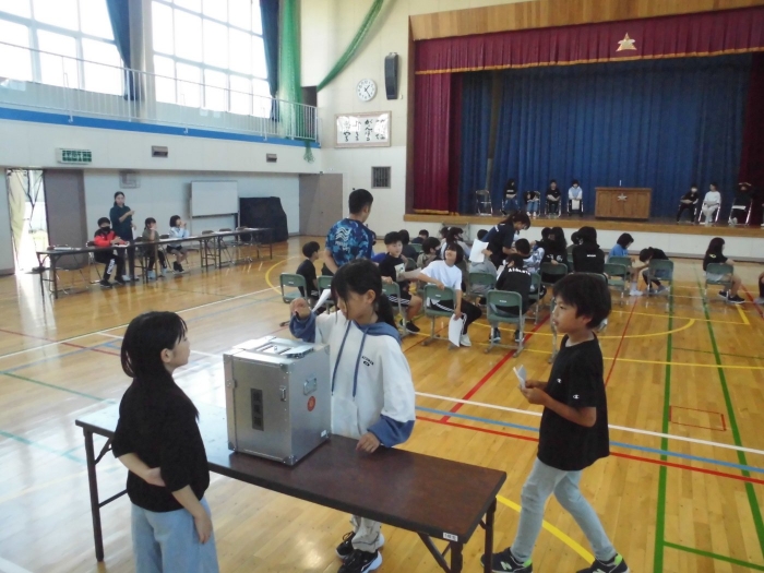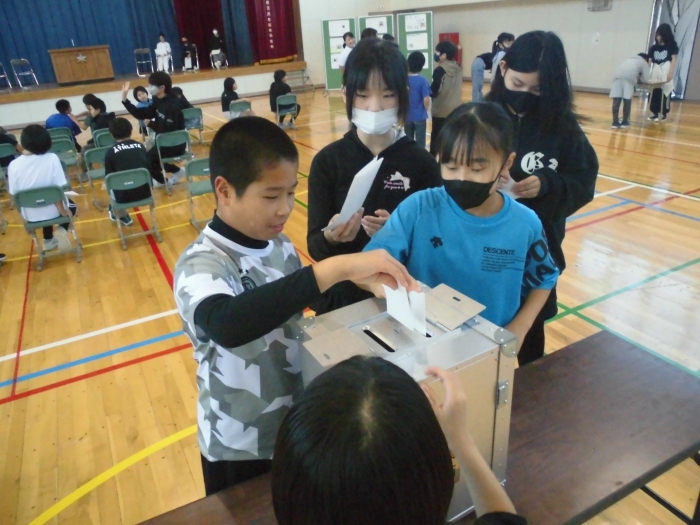 また有権者である4年生以上の子ども達も真剣に聞く姿が見られました。一人一人が自分らしく生活できる学校、笑顔溢れる元気な学校になるためにリーダーシップとフォロワーシップががっちりスクラムを組んで、さらに素敵な学校を目指しましょう。