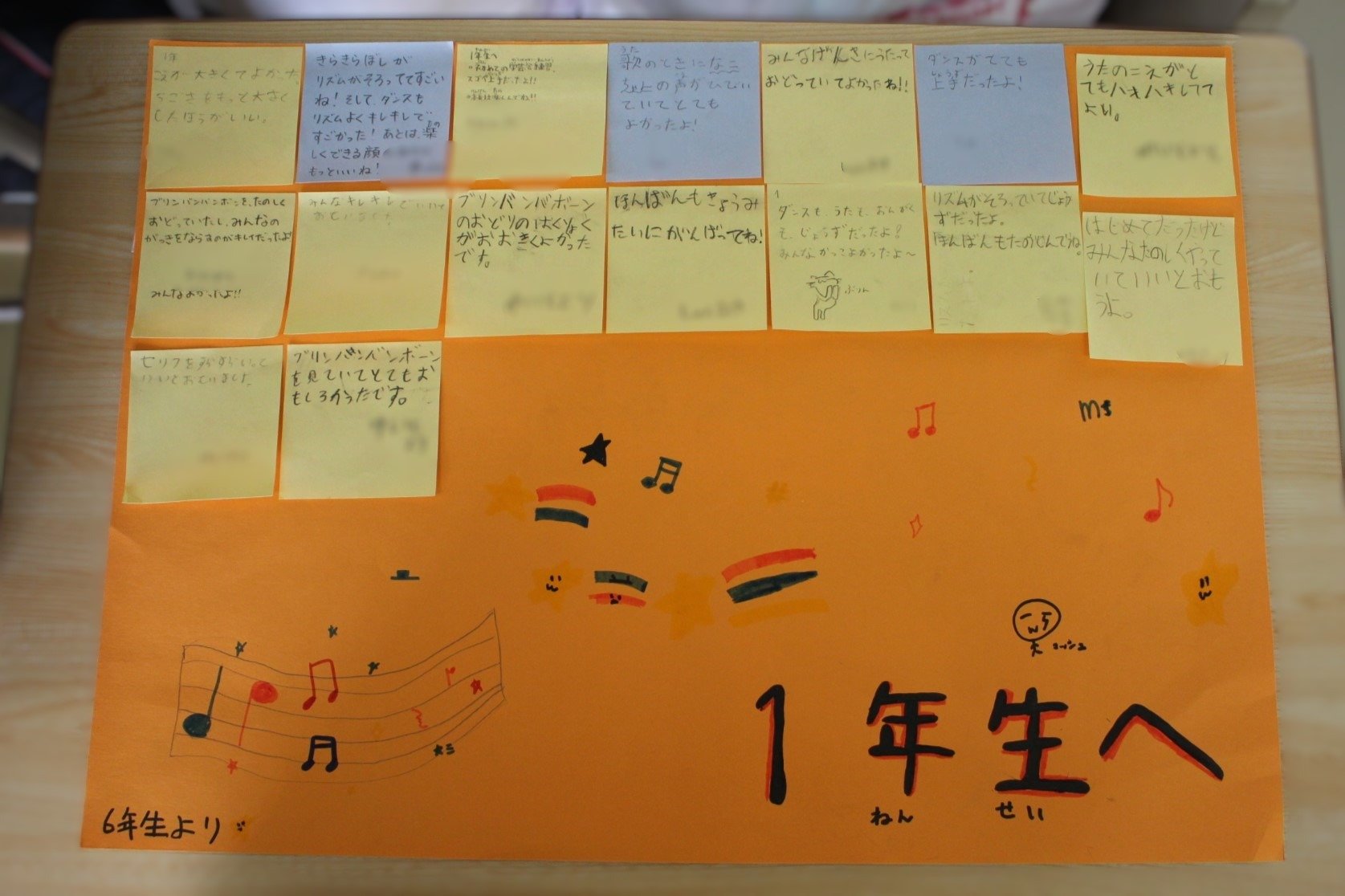 学芸会前日準備 2024年10月11日(金) 放課後に学芸会の前日準備を行いました。いよいよ13日に学芸会開催です。総練習後、子どもたちは、他の学年に感想メッセージを伝え合いました。子どもたちの練習の成果をぜひ見に来てください。お待ちしています。