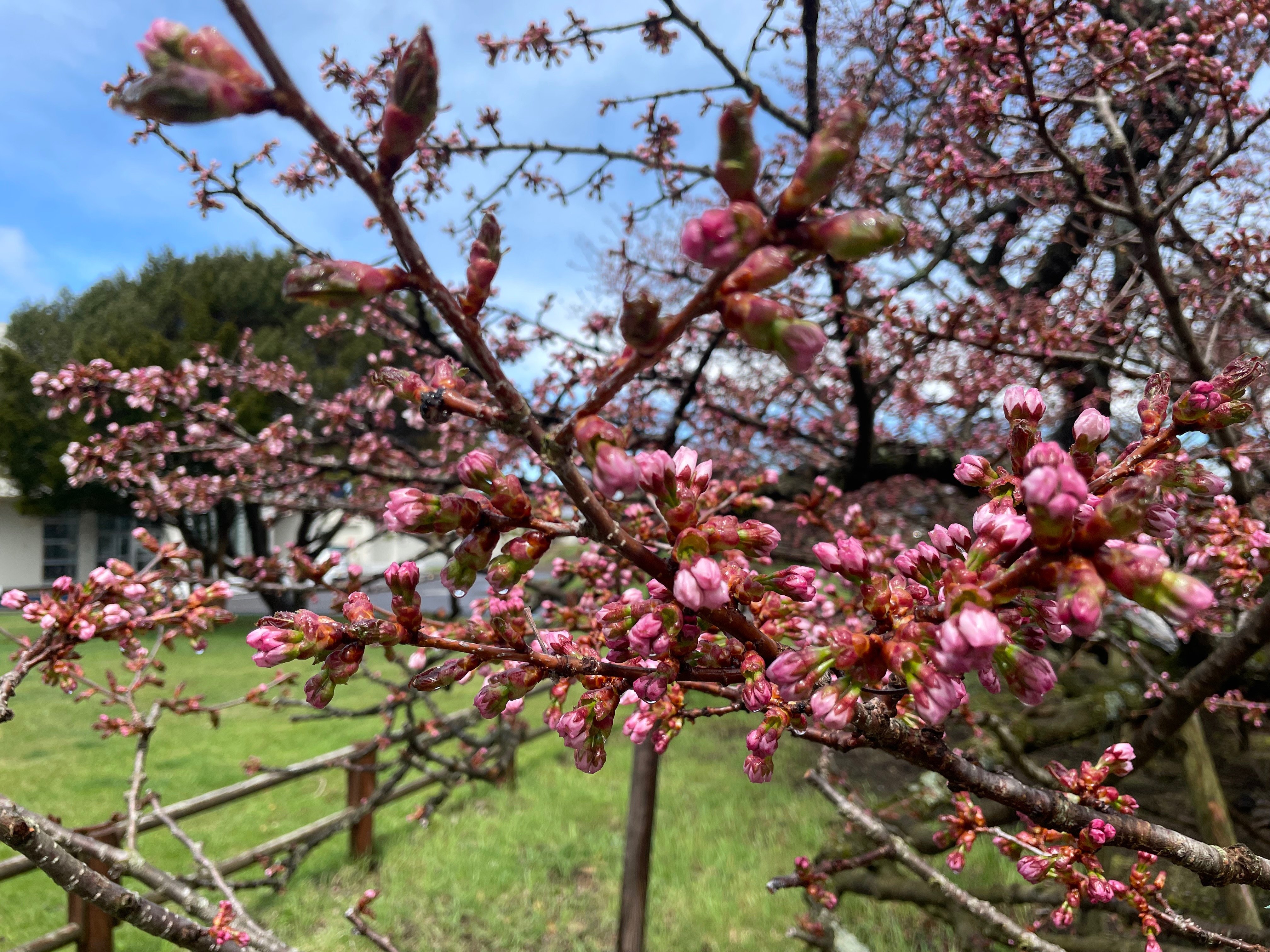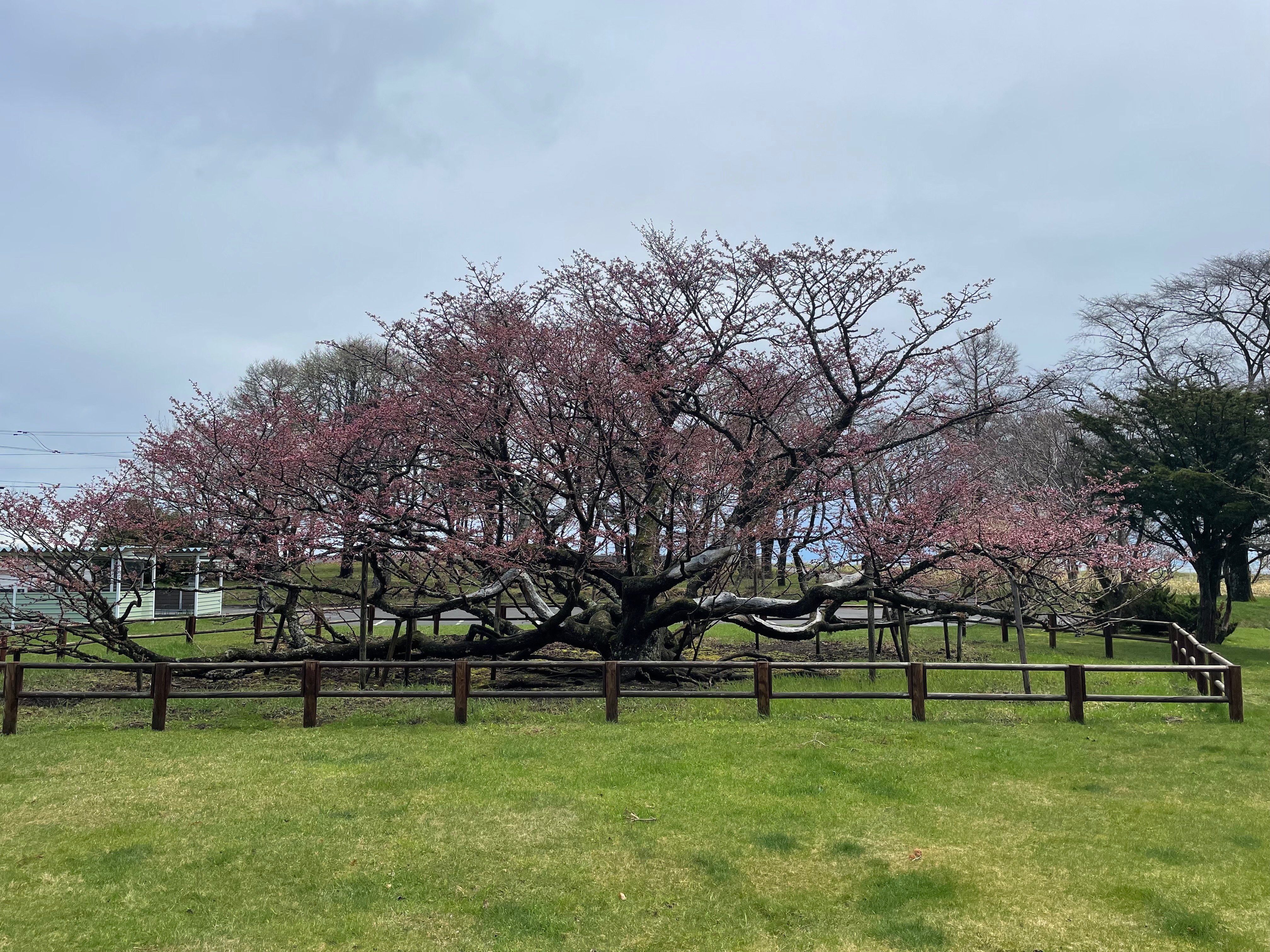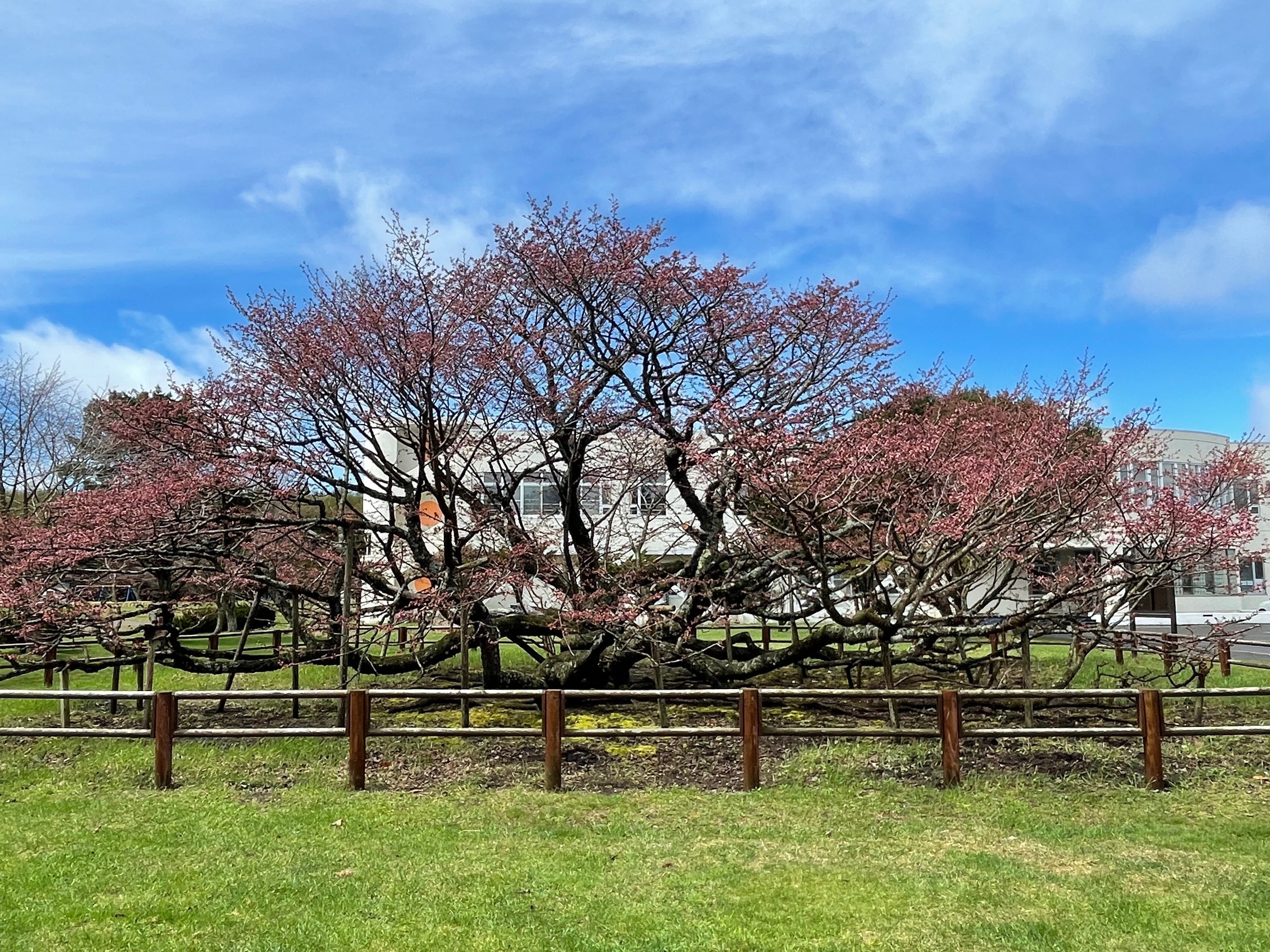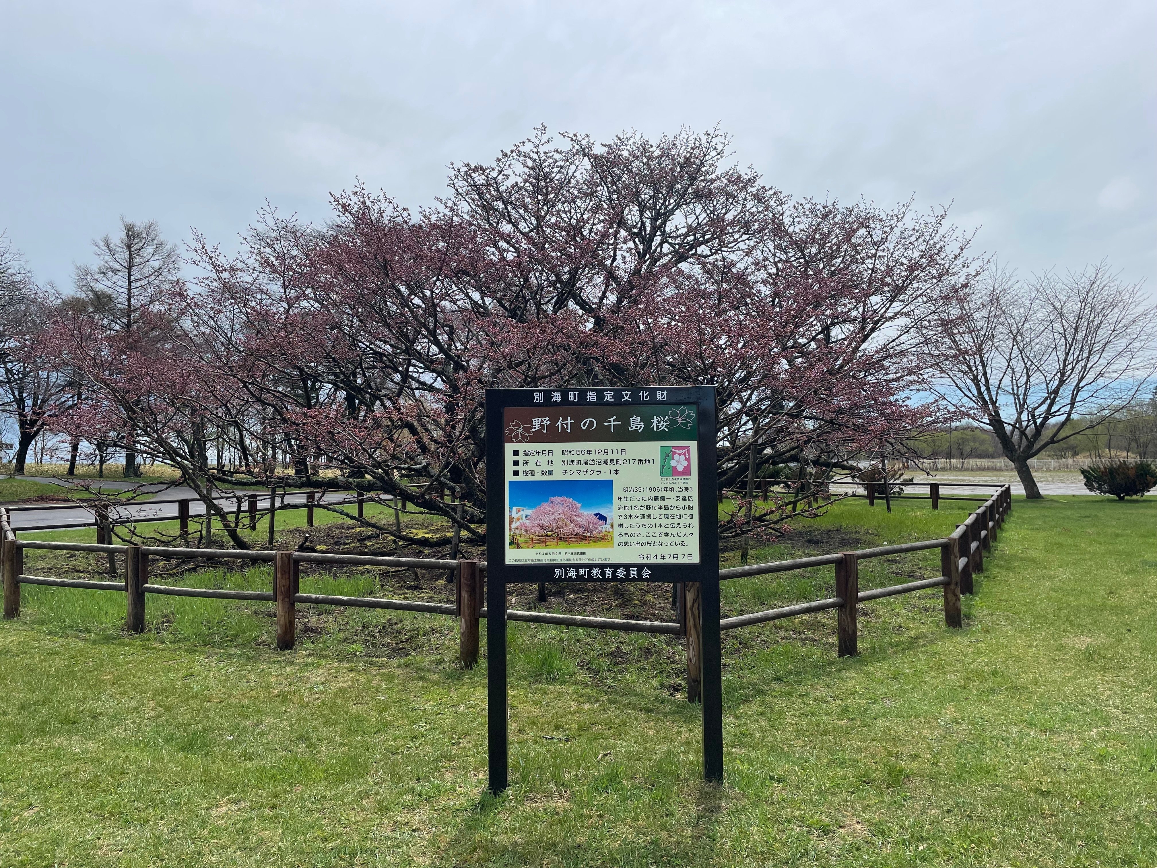 朝の雨があがり、青空が見えています。気温も上がってきました。野付の千島桜(10:00頃)は、このような感じです。桜色が濃くなりました。