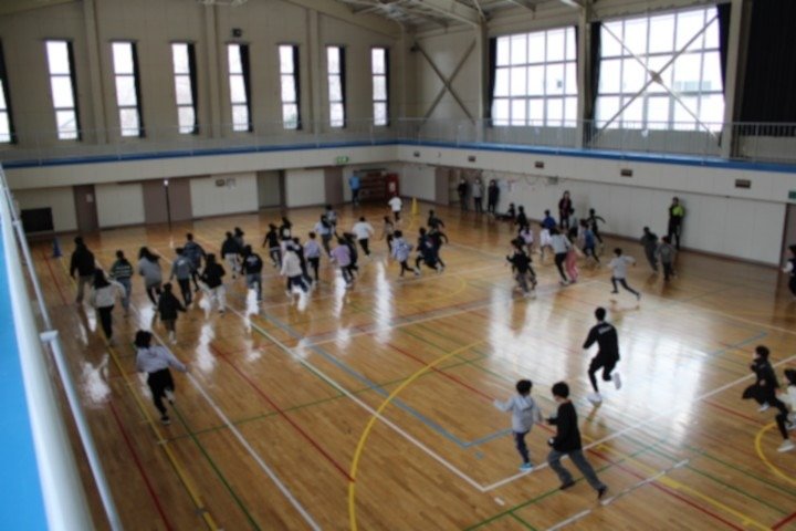 10日(火)の朝の時間に今年度最終の全校交流集会を行いました。書記局が企画した「狼さん今何時?」(鬼ごっこ)です。1年生と書記局が最初に鬼をやりました。後半は鬼の希望者を募って行いました。優しく1年生に関わる書記局の姿、体育館いっぱい元気に活動する全校児童の姿に、学校が「よりよく」なるようにと取り組んできた「書記局」の取組が表れました。楽しい時間をありがとうございました。