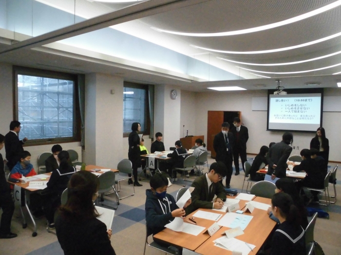 どさんこ子ども根室地区会議に参加 2023年11月11日(土) 児童会書記局の2人の児童が、別海町役場を会場に『どさんこ子ども根室地区会議』に参加しました。いじめを「しない・させない・一人で悩まない」ために、どうすれば助け合ったり支え合ったりできるのだろうかというテーマのもと、参加校の児童生徒の皆さんと共に、学校の取組や自分の考えを交流することができました。自分の意見をしっかり話す本校参加の2人の姿、とても素敵でした。